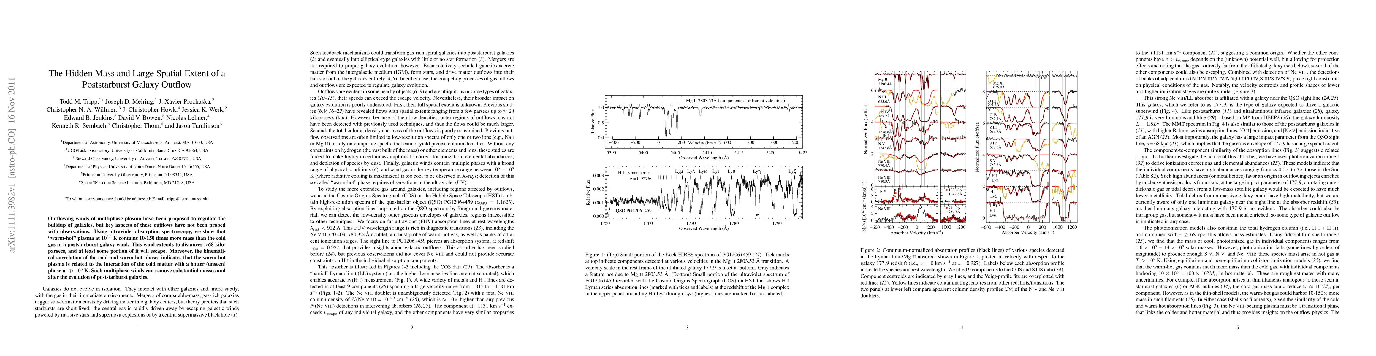 Outflowing winds of multiphase plasma have been proposed to regulate the buildup of galaxies, but key aspects of these outflows have not been probed with observations. Using ultraviolet absorption spectroscopy, we show that "warm-hot" plasma at 10^{5.5} K contains 10-150 times more mass than the cold gas in a poststarburst galaxy wind. This wind extends to distances >68 kiloparsecs, and at least some portion of it will escape. Moreover, the kinematical correlation of the cold and warm-hot phases indicates that the warm-hot plasma is related to the interaction of the cold matter with a hotter (unseen) phase at >>10^{6} K. Such multiphase winds can remove substantial masses and alter the evolution of poststarburst galaxies.