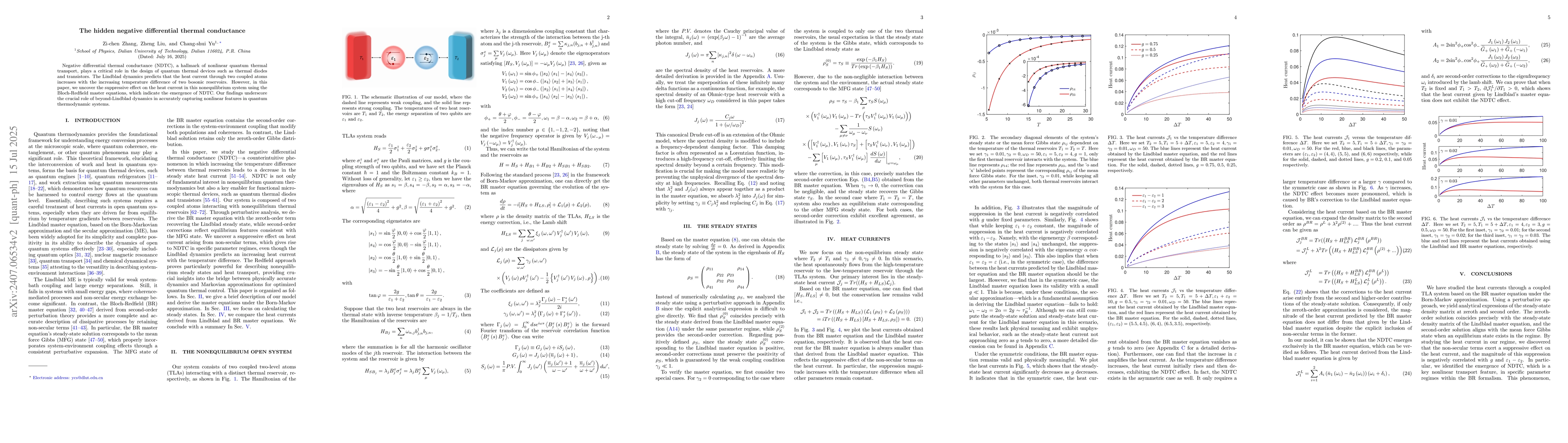 Negative differential thermal conductance (NDTC), a hallmark of nonlinear quantum thermal transport, plays a critical role in the design of quantum thermal devices such as thermal diodes and transistors. The Lindblad dynamics predicts that the heat current through two coupled atoms increases with the increasing temperature difference of two bosonic reservoirs. However, in this paper, we uncover the suppressive effect on the heat current in this nonequilibrium system using the Bloch-Redfield master equations, which indicate the emergence of NDTC. Our findings underscore the crucial role of beyond-Lindblad dynamics in accurately capturing nonlinear features in quantum thermodynamic systems.