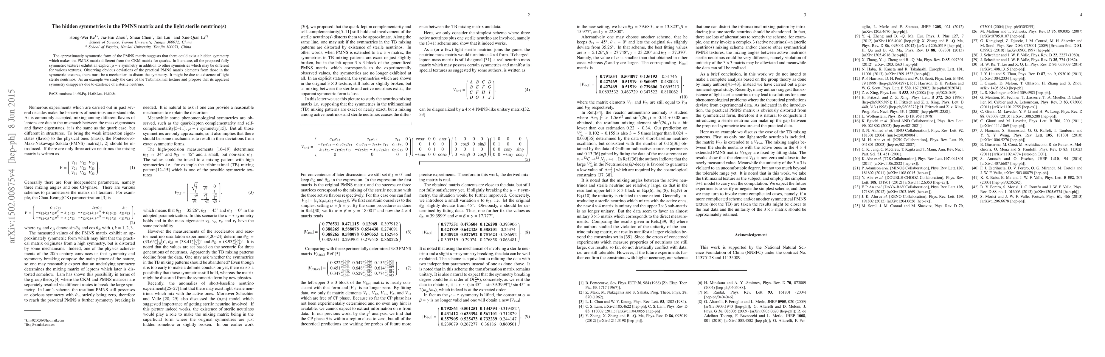 This paper proposes that a hidden symmetry in the PMNS matrix is distorted by the existence of light sterile neutrinos, leading to a more accurate fit with experimental data.