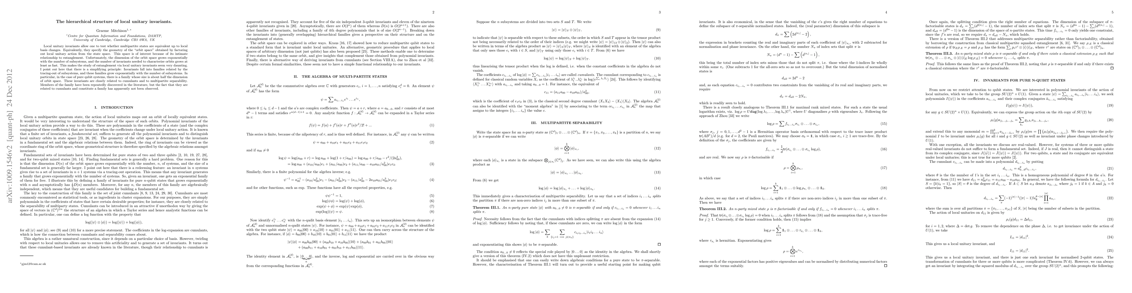 This paper explores the hierarchical structure of local unitary invariants, which are crucial for determining the equivalence of multipartite quantum states under local basis changes. It reveals that these invariants naturally organize into families related by subsystem tracing, simplifying the daunting task of characterizing entanglement.