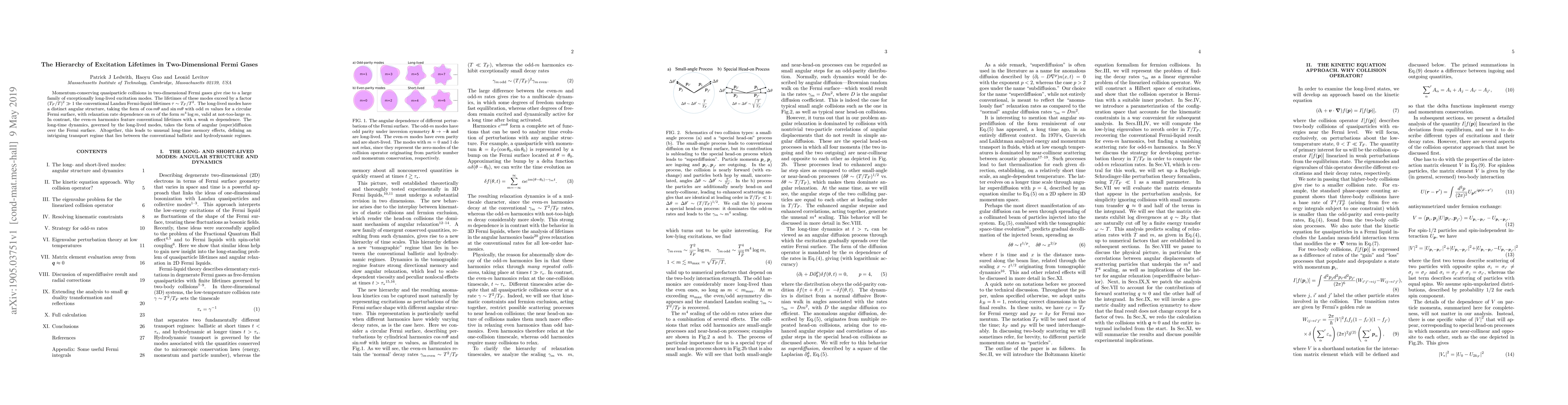 This paper investigates the hierarchy of excitation lifetimes in two-dimensional Fermi gases, revealing exceptionally long-lived modes with lifetimes exceeding conventional Landau Fermi-liquid lifetimes by a significant factor. These modes exhibit angular structures and long-time dynamics characterized by angular (super)diffusion, leading to unique transport behavior between ballistic and hydrodynamic regimes.