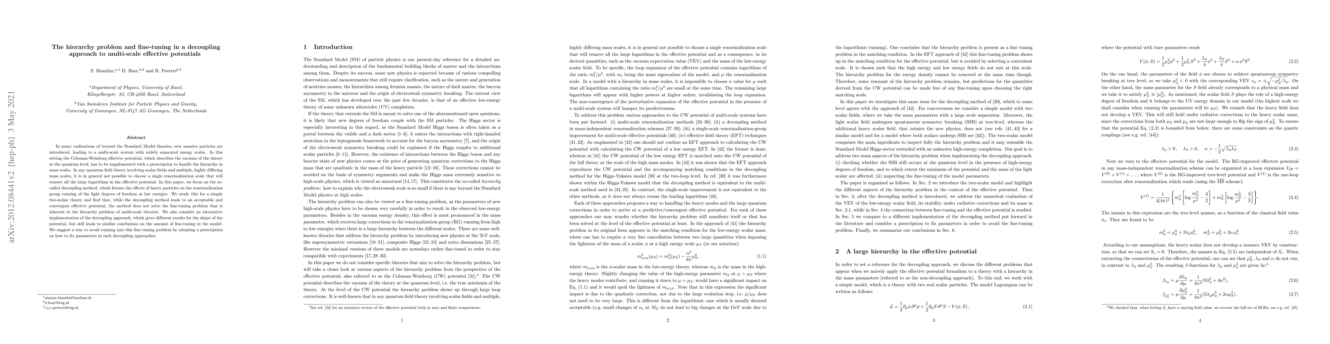 In many realizations of beyond the Standard Model theories, new massive particles are introduced, leading to a multi-scale system with widely separated energy scales. In this setting the Coleman-Weinberg effective potential, which describes the vacuum of the theory at the quantum level, has to be supplemented with a prescription to handle the hierarchy in mass scales. In any quantum field theory involving scalar fields and multiple, highly differing mass scales, it is in general not possible to choose a single renormalization scale that will remove all the large logarithms in the effective potential. In this paper, we focus on the so-called decoupling method, which freezes the effects of heavy particles on the renormalization group running of the light degrees of freedom at low energies. We study this for a simple two-scalar theory and find that, while the decoupling method leads to an acceptable and convergent effective potential, the method does not solve the fine-tuning problem that is inherent to the hierarchy problem of multi-scale theories. We also consider an alternative implementation of the decoupling approach, which gives different results for the shape of the potential, but still leads to similar conclusions on the amount of fine-tuning in the model. We suggest a way to avoid running into this fine-tuning problem by adopting a prescription on how to fix parameters in such decoupling approaches.