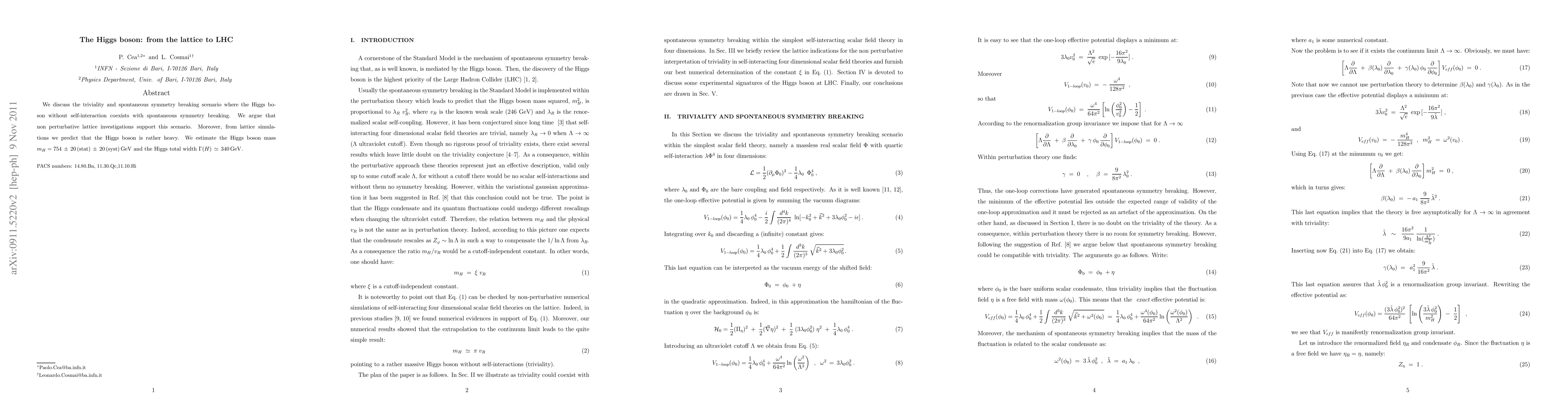 A research paper discusses a lattice investigation that supports a scenario where the Higgs boson is heavy and non-interacting, predicting a mass of 754 GeV and total width of 340 GeV.