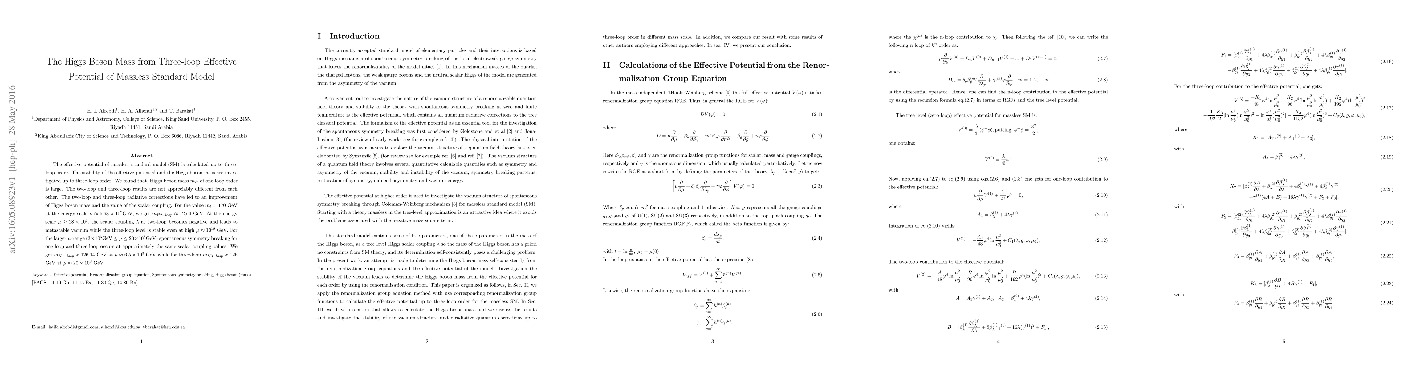 This paper calculates the three-loop effective potential of the massless Standard Model to determine the Higgs boson mass. It finds that while the one-loop result is significantly larger, the two-loop and three-loop corrections yield similar, more accurate masses around 125.4 GeV, with the three-loop level maintaining stability at higher energy scales.