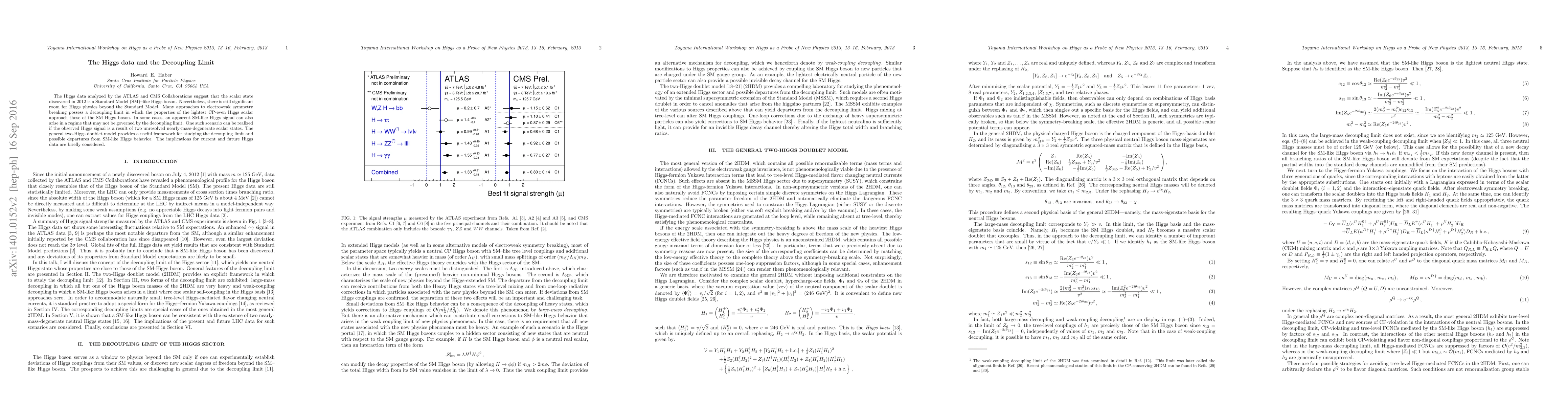 The paper analyzes the Higgs data from ATLAS and CMS, confirming a Standard Model-like Higgs boson, while exploring beyond-SM scenarios, particularly the decoupling limit. It discusses how non-decoupling regimes, such as two nearly-mass-degenerate scalar states, can mimic an SM-like Higgs signal, using the two-Higgs doublet model as a framework.