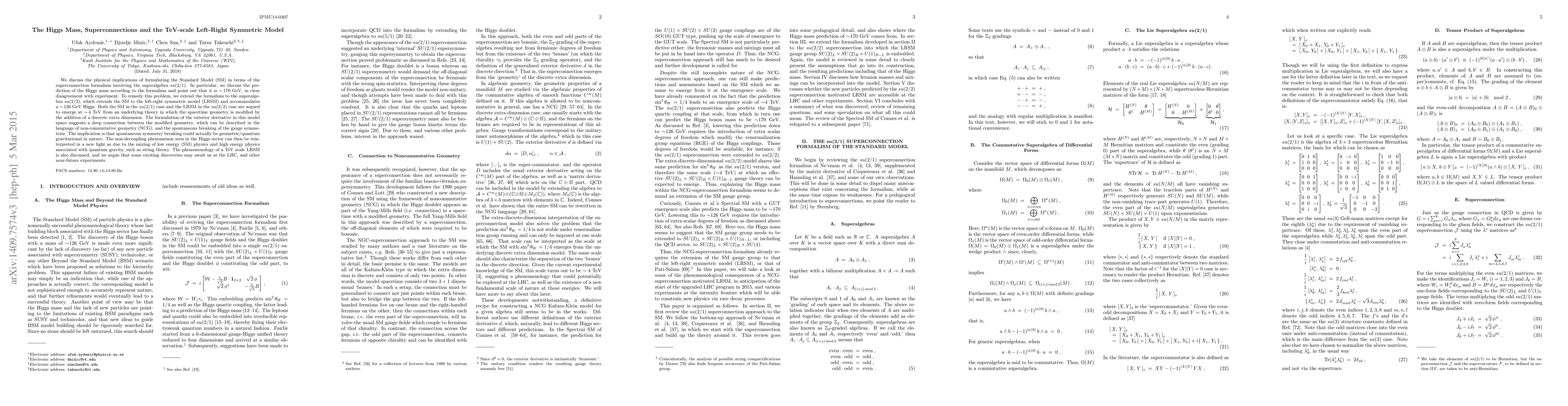 We discuss the physical implications of formulating the Standard Model (SM) in terms of the superconnection formalism involving the superalgebra su(2/1). In particular, we discuss the prediction of the Higgs mass according to the formalism and point out that it is ~170 GeV, in clear disagreement with experiment. To remedy this problem, we extend the formalism to the superalgebra su(2/2), which extends the SM to the left-right symmetric model (LRSM) and accommodates a ~126 GeV Higgs. Both the SM in the su(2/1) case and the LRSM in the su(2/2) case are argued to emerge at ~4 TeV from an underlying theory in which the spacetime geometry is modified by the addition of a discrete extra dimension. The formulation of the exterior derivative in this model space suggests a deep connection between the modified geometry, which can be described in the language of non-commutative geometry (NCG), and the spontaneous breaking of the gauge symmetries. The implication is that spontaneous symmetry breaking could actually be geometric/quantum gravitational in nature. The non-decoupling phenomenon seen in the Higgs sector can then be reinterpreted in a new light as due to the mixing of low energy (SM) physics and high energy physics associated with quantum gravity, such as string theory. The phenomenology of a TeV scale LRSM is also discussed, and we argue that some exciting discoveries may await us at the LHC, and other near-future experiments.