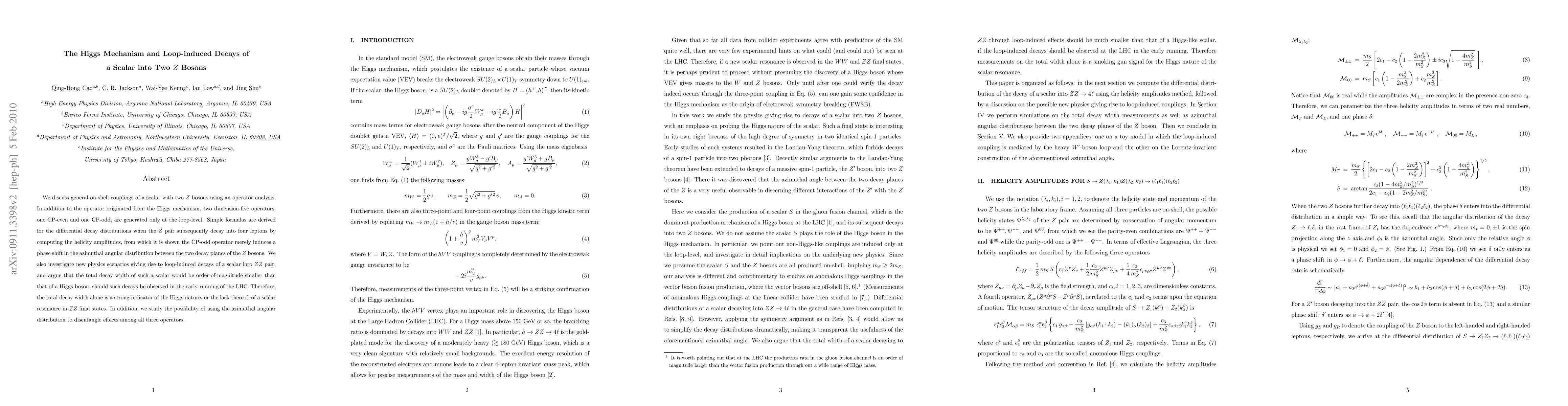 We discuss general on-shell couplings of a scalar with two Z bosons using an operator analysis. In addition to the operator originated from the Higgs mechanism, two dimension-five operators, one CP-even and one CP-odd, are generated only at the loop-level. Simple formulas are derived for the differential decay distributions when the Z pair subsequently decay into four leptons by computing the helicity amplitudes, from which it is shown the CP-odd operator merely induces a phase shift in the azimuthal angular distribution between the two decay planes of the Z bosons. We also investigate new physics scenarios giving rise to loop-induced decays of a scalar into ZZ pair, and argue that the total decay width of such a scalar would be order-of-magnitude smaller than that of a Higgs boson, should such decays be observed in the early running of the LHC. Therefore, the total decay width alone is a strong indicator of the Higgs nature, or the lack thereof, of a scalar resonance in ZZ final states. In addition, we study the possibility of using the azimuthal angular distribution to disentangle effects among all three operators.