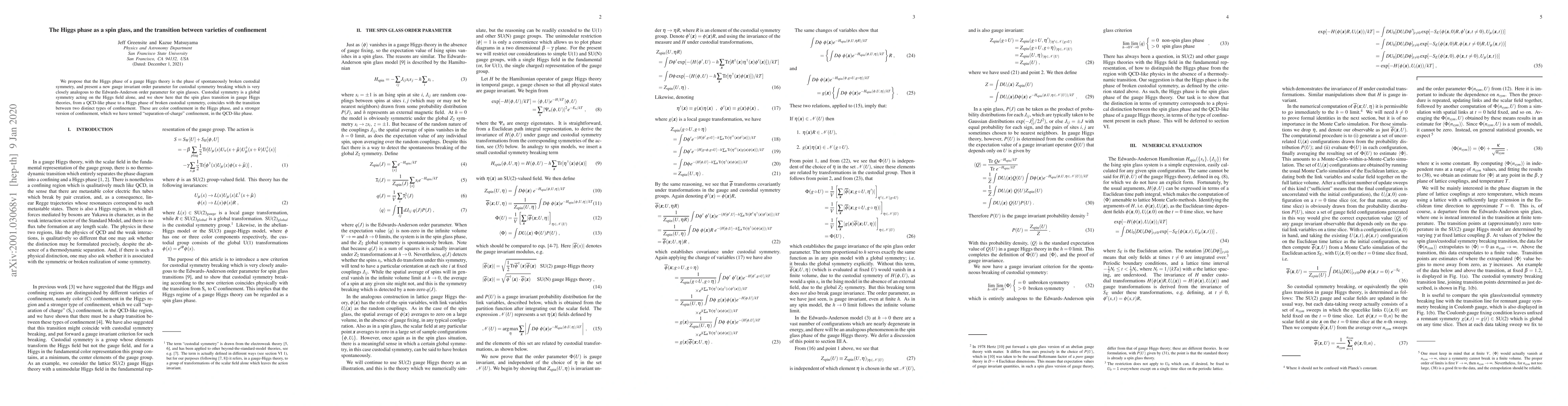 The paper proposes that the Higgs phase in gauge Higgs theories represents a spontaneously broken custodial symmetry, introducing a gauge-invariant order parameter analogous to spin glasses. It identifies a transition from QCD-like confinement to color confinement in the Higgs phase, termed the "separation-of-charge" confinement in the former.
