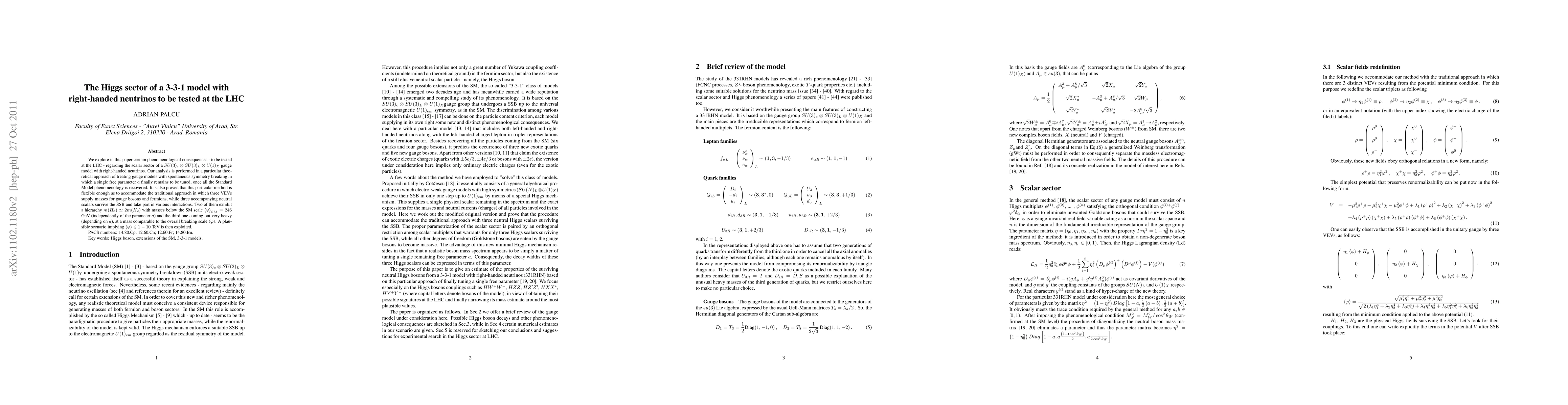 at the LHC - regarding the scalar sector of a SU(3)xSU(3)xU(1) gauge model with