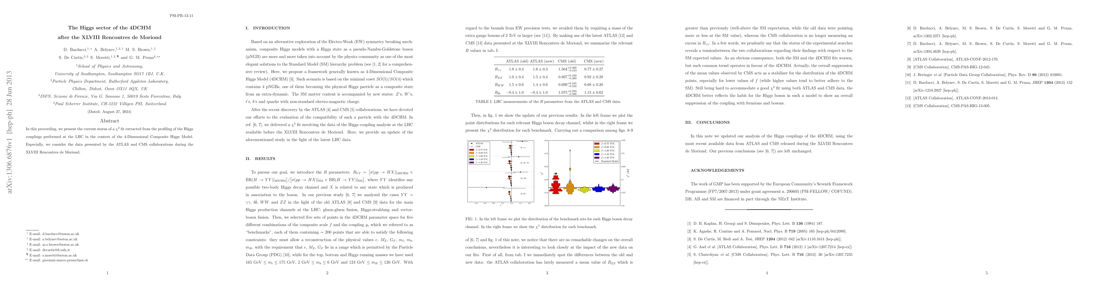 In this proceeding, we present the current status of a $\chi^2$ fit extracted from the profiling of the Higgs couplings performed at the LHC in the context of the 4-Dimensional Composite Higgs Model. Especially, we consider the data presented by the ATLAS and CMS collaborations during the XLVIII Rencontres de Moriond.