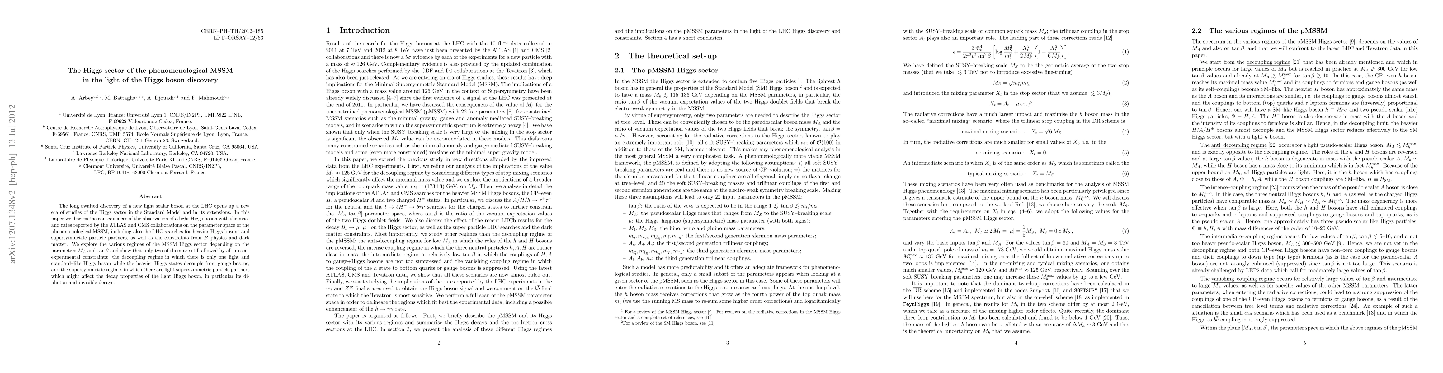 This paper examines the implications of the LHC discovery of a light Higgs boson on the phenomenological MSSM, finding that only two regimes remain viable: the decoupling regime and the supersymmetric regime, both influenced by parameters MA and tan beta.