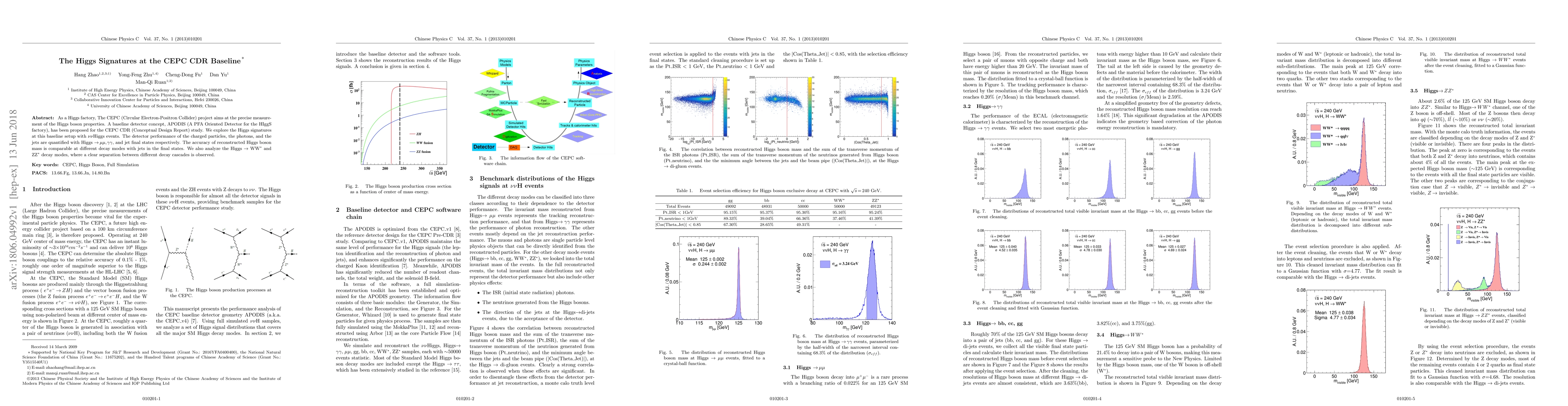This paper investigates Higgs boson signatures at the CEPC baseline detector, APODIS, focusing on various decay modes including Higgs -> mumu, gammagamma, and jets. The study finds comparable accuracy in reconstructed Higgs mass across different decay modes, with clear separation observed in Higgs -> WW* and ZZ* decay cascades.