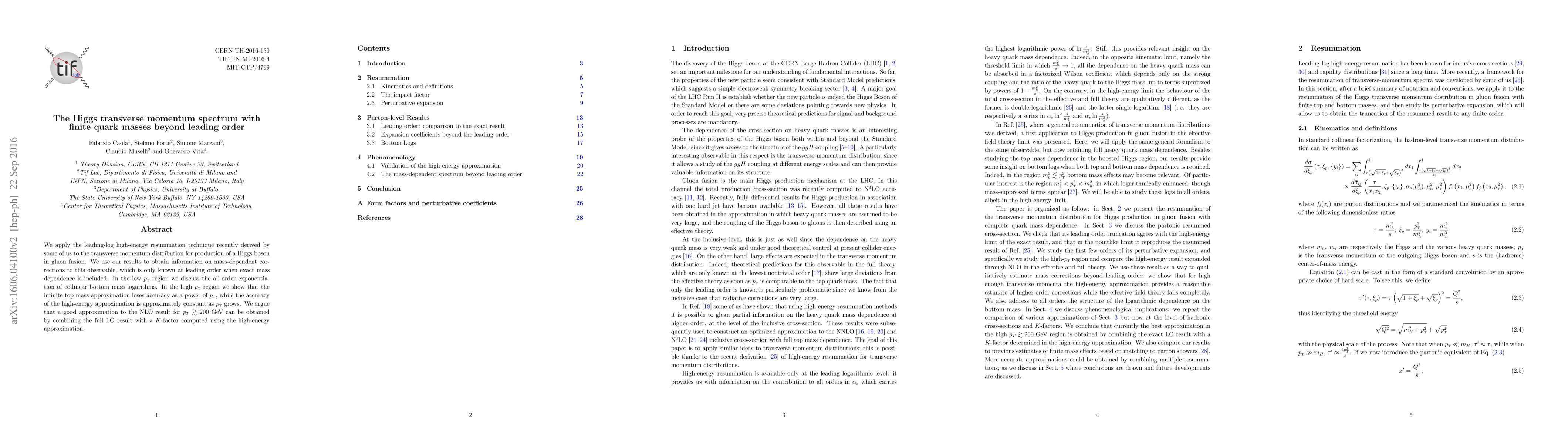 Researchers studied Higgs boson production in gluon fusion with finite quark masses, finding that mass-dependent corrections become significant at low transverse momentum and high-energy approximations lose accuracy as momentum grows.