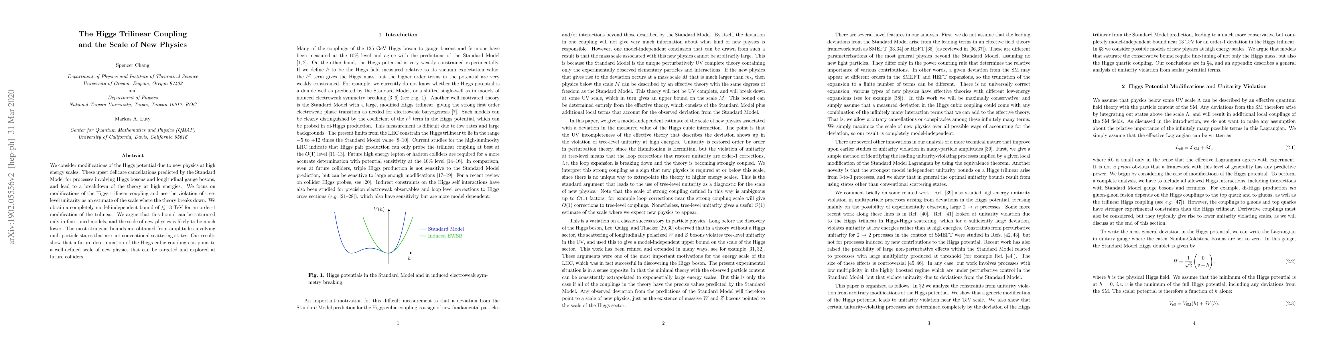 This paper investigates modifications of the Higgs trilinear coupling due to new physics, finding a model-independent bound of ~13 TeV for an order-1 modification. It suggests that the scale of new physics is likely much lower than this bound, and future colliders could explore this scale by determining the Higgs cubic coupling.