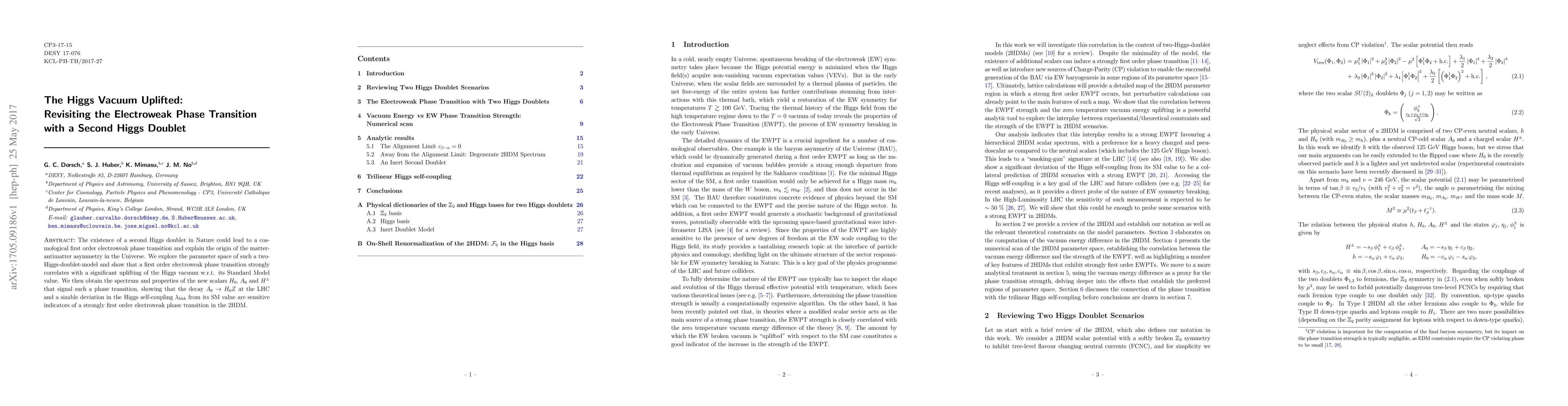This paper investigates the implications of a second Higgs doublet in a two-Higgs-doublet model, suggesting it could cause a first-order electroweak phase transition and explain matter-antimatter asymmetry. It finds a strong correlation between such a transition and a significant uplift in the Higgs vacuum, proposing decay channels and scalar properties at the LHC as indicators of this transition.