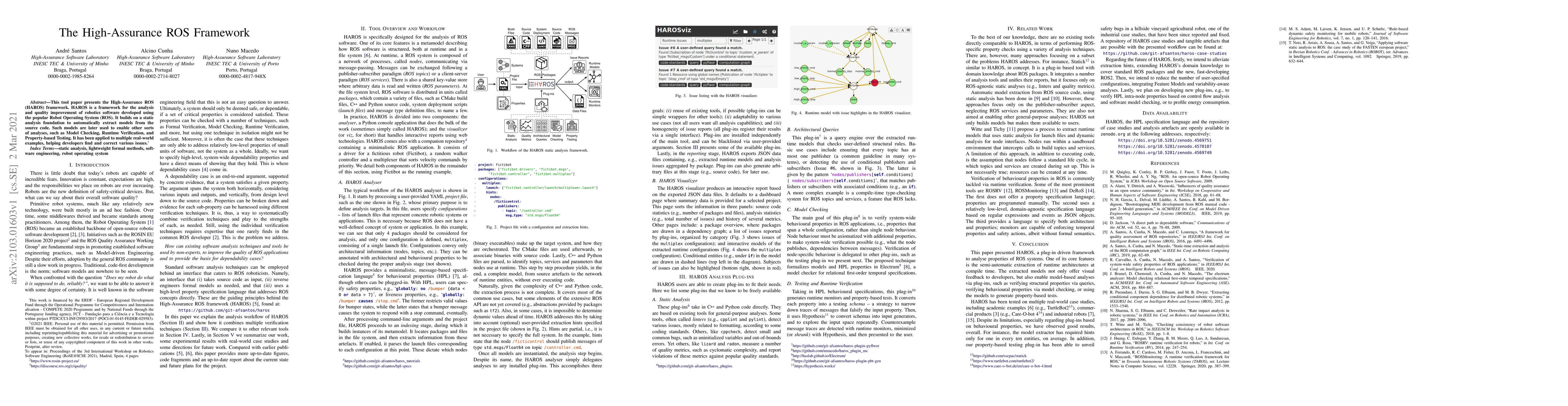 The High-Assurance ROS (HAROS) framework automates the extraction of models from ROS-based robotics software for enhanced quality improvement through static analysis, model checking, runtime verification, and property-based testing. It has proven effective in identifying and resolving issues in real-world applications.