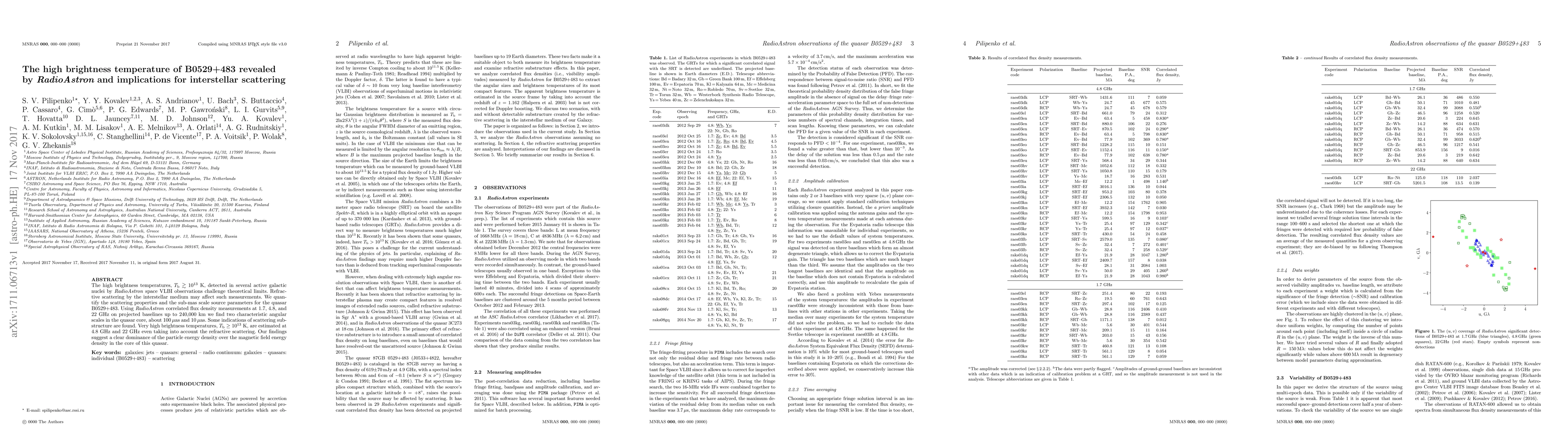 Researchers used RadioAstron space VLBI to detect high brightness temperatures in quasar B0529+483, challenging theoretical limits and suggesting a dominance of particle energy over magnetic field energy density in its core.