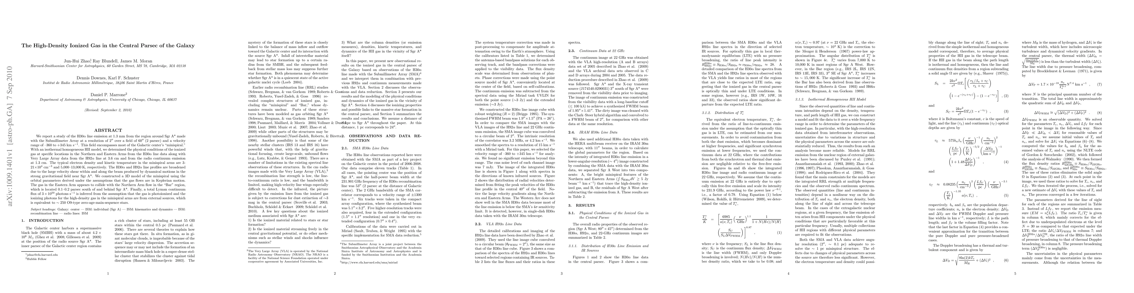 We report a study of the H30$\alpha$ line emission at 1.3 mm from the region around Sgr A* made with the Submillimeter Array at a resolution of 2\arcsec\ over a field of 60\arcsec\ (2 parsec) and a velocity range of -360 to +345 \kms. This field encompasses most of the Galactic center's "minispiral". With an isothermal homogeneous HII model, we determined the physical conditions of the ionized gas at specific locations in the Northern and Eastern Arms from the H30$\alpha$ line data along with Very Large Array data from the H92$\alpha$ line at 3.6 cm and from the radio continuum emission at 1.3 cm. The typical electron density and kinetic temperature in the minispiral arms are 3-21$\times10^4$ cm$^{-3}$ and 5,000-13,000 K, respectively. The H30$\alpha$ and H92$\alpha$ line profiles are broadened due to the large velocity shear within and along the beam produced by dynamical motions in the strong gravitational field near Sgr A*. We constructed a 3D model of the minispiral using the orbital parameters derived under the assumptions that the gas flows are in Keplerian motion. The gas in the Eastern Arm appears to collide with the Northern Arm flow in the "Bar" region, which is located 0.1-0.2 parsec south of and behind Sgr A*. Finally, a total Lyman continuum flux of $3\times10^{50}$ photons s$^{-1}$ is inferred from the assumption that the gas is photoionized and the ionizing photons for the high-density gas in the minispiral arms are from external sources, which is equivalent to $\sim250$ O9-type zero-age-main-sequence stars.