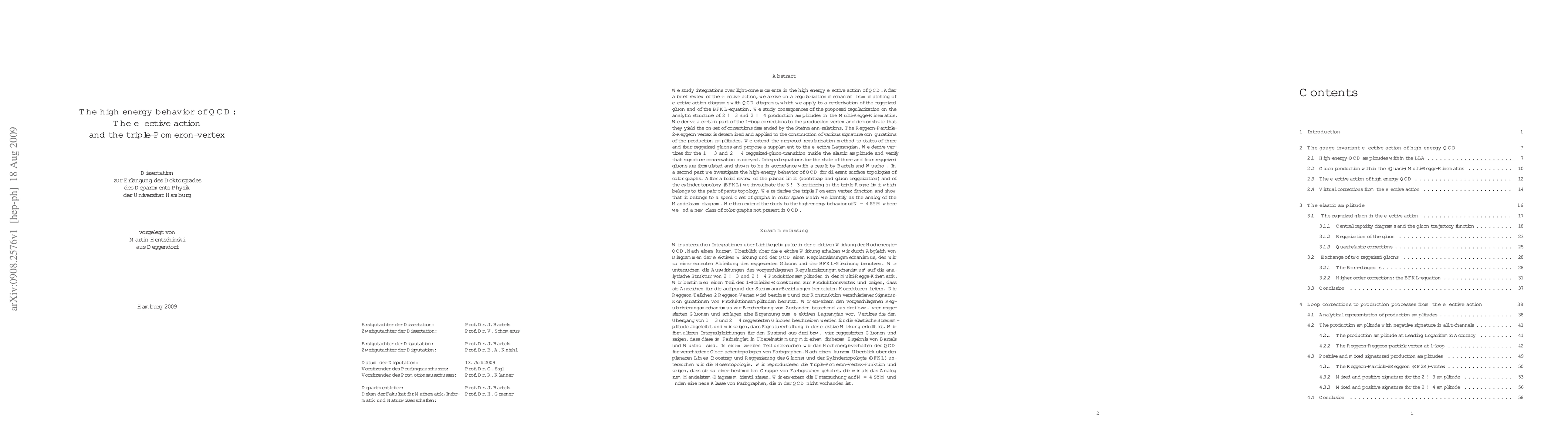 This paper investigates the high-energy behavior of Quantum Chromodynamics (QCD) through the effective action and the triple-Pomeron vertex, focusing on regularization methods and their implications for multi-Regge kinematics and color graph topologies. It also explores the high-energy behavior of N=4 Super Yang-Mills theory, identifying new classes of color graphs.