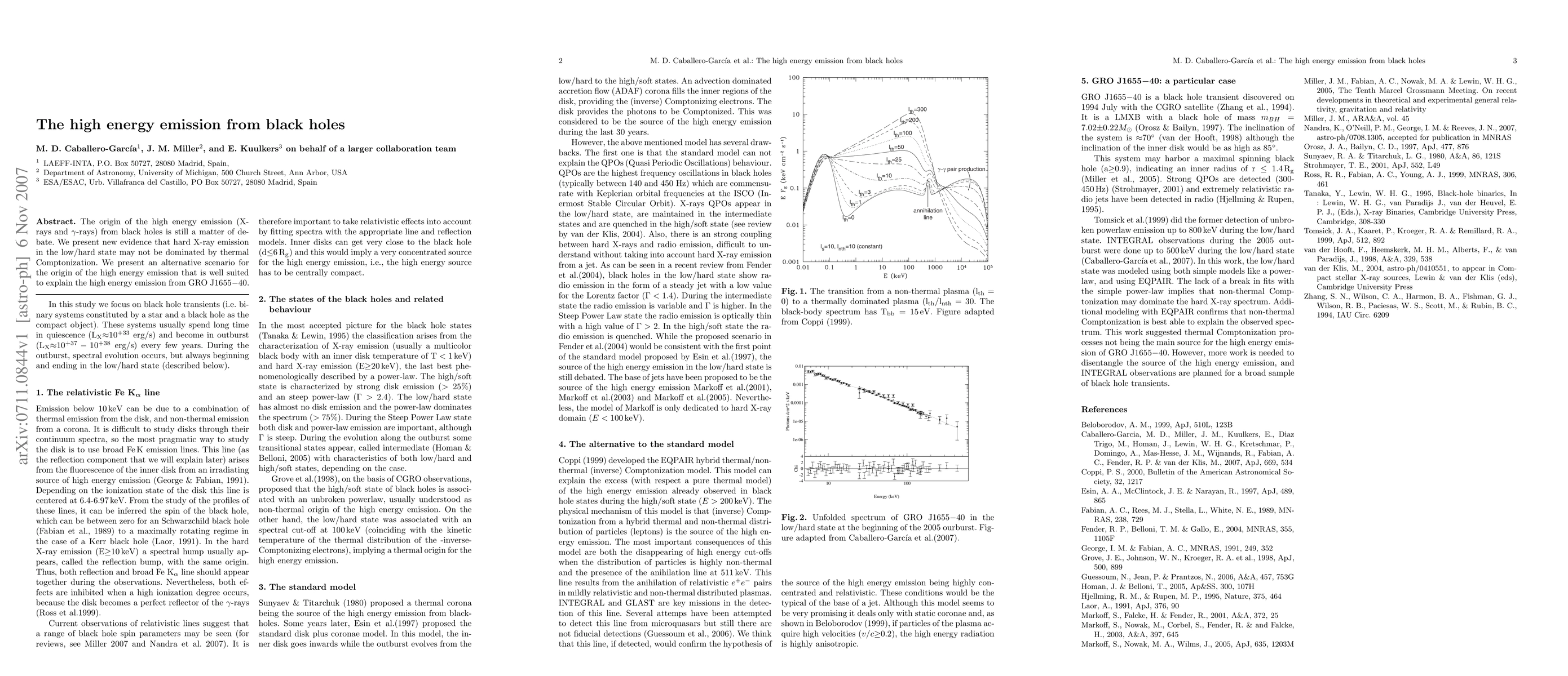 The origin of the high energy emission (X-rays and gamma-rays) from black holes is still a matter of debate. We present new evidence that hard X-ray emission in the low/hard state may not be dominated by thermal Comptonization. We present an alternative scenario for the origin of the high energy emission that is well suited to explain the high energy emission from GRO J1655-40.