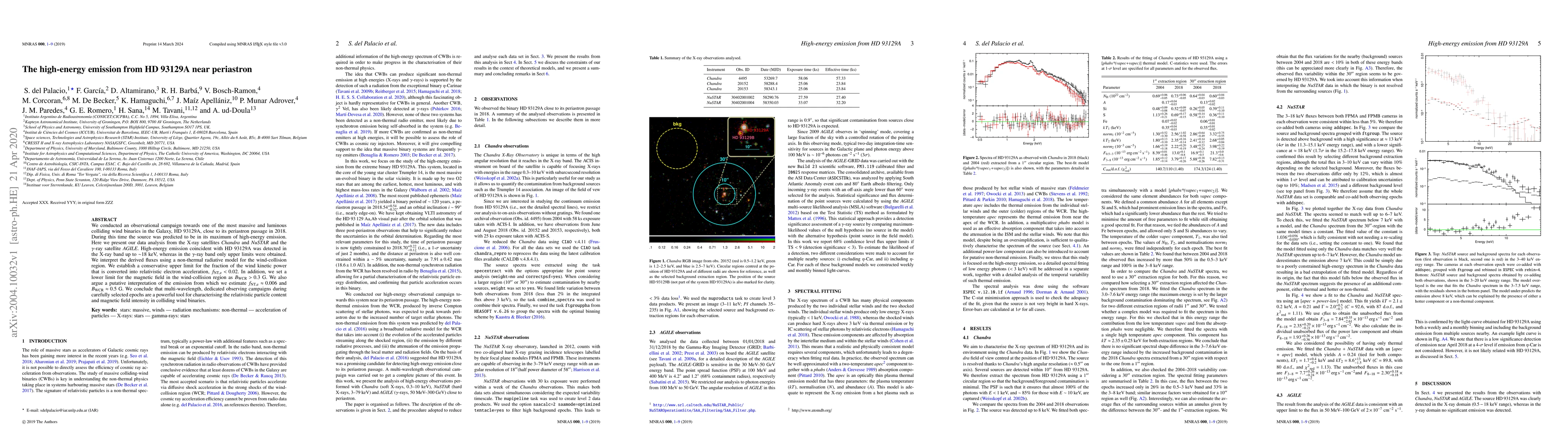 We conducted an observational campaign towards one of the most massive and luminous colliding wind binaries in the Galaxy, HD~93129A, close to its periastron passage in 2018. During this time the source was predicted to be in its maximum of high-energy emission. Here we present our data analysis from the X-ray satellites \textit{Chandra} and \textit{NuSTAR} and the $\gamma$-ray satellite \textit{AGILE}. High-energy emission coincident with HD~93129A was detected in the X-ray band up to $\sim$18~keV, whereas in the $\gamma$-ray band only upper limits were obtained. We interpret the derived fluxes using a non-thermal radiative model for the wind-collision region. We establish a conservative upper limit for the fraction of the wind kinetic power that is converted into relativistic electron acceleration, $f_\mathrm{NT,e} < 0.02$. In addition, we set a lower limit for the magnetic field in the wind-collision region as $B_\mathrm{WCR} > 0.3$~G. We also argue a putative interpretation of the emission from which we estimate $f_\mathrm{NT,e} \approx 0.006$ and $B_\mathrm{WCR} \approx 0.5$~G. We conclude that multi-wavelength, dedicated observing campaigns during carefully selected epochs are a powerful tool for characterising the relativistic particle content and magnetic field intensity in colliding wind binaries.