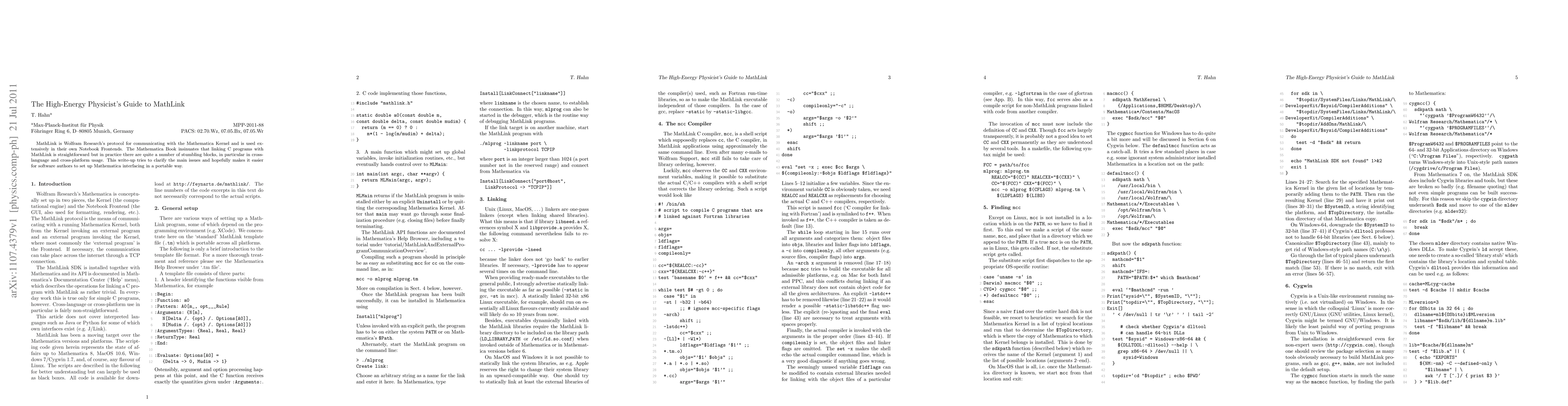 MathLink is Wolfram Research's protocol for communicating with the Mathematica Kernel and is used extensively in their own Notebook Frontends. The Mathematica Book insinuates that linking C programs with MathLink is straightforward but in practice there are quite a number of stumbling blocks, in particular in cross-language and cross-platform usage. This write-up tries to clarify the main issues and hopefully makes it easier for software authors to set up Mathematica interfacing in a portable way.