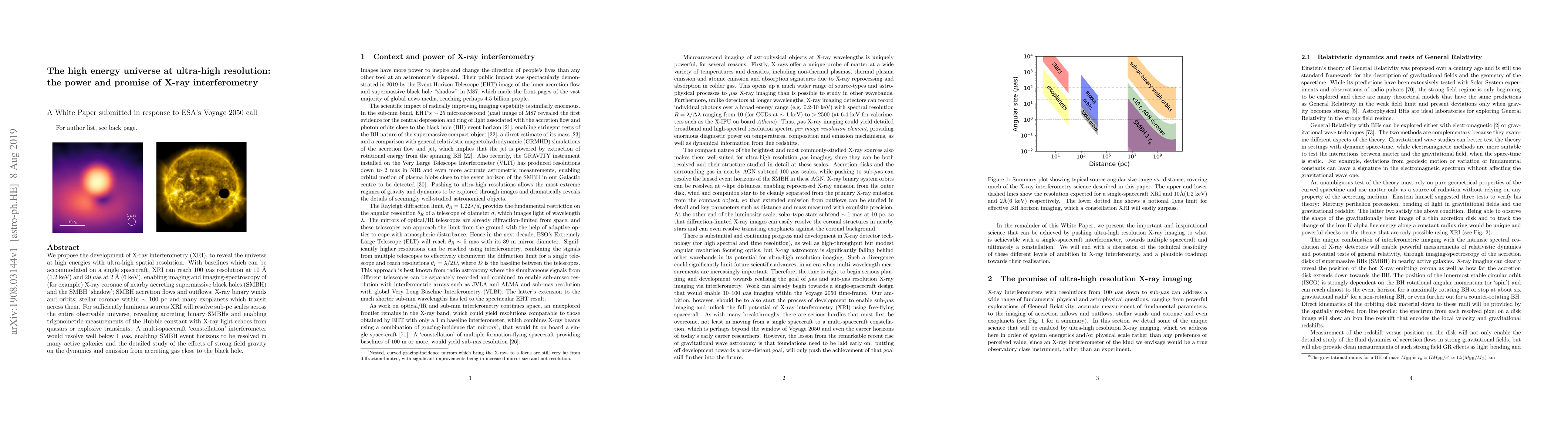 The paper proposes X-ray interferometry (XRI) to achieve ultra-high spatial resolution in the high-energy universe, with baselines accommodated on a single spacecraft.