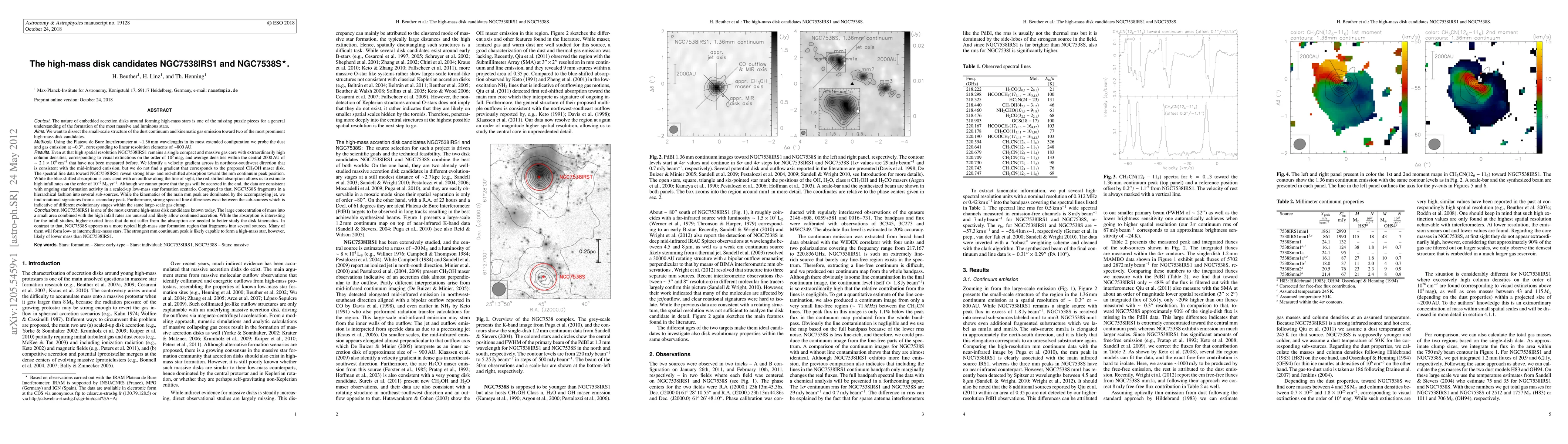 Context: The nature of embedded accretion disks around forming high-mass stars is one of the missing puzzle pieces for a general understanding of the formation of the most massive and luminous stars. Methods: Using the Plateau de Bure Interferometer at 1.36mm wavelengths in its most extended configuration we probe the dust and gas emission at ~0.3",corresponding to linear resolution elements of ~800AU. Results: NGC7538IRS1 remains a single compact and massive gas core with extraordinarily high column densities, corresponding to visual extinctions on the order of 10^5mag, and average densities within the central 2000AU of ~2.1x10^9cm^-3 that have not been measured before. We identify a velocity gradient across in northeast-southwest direction that is consistent with the mid-infrared emission, but we do not find a gradient that corresponds to the proposed CH3OH maser disk. The spectral line data toward NGC7538IRS1 reveal strong blue- and red-shifted absorption toward the mm continuum peak position. The red-shifted absorption allows us to estimate high infall rates on the order of 10^-2 Msun/yr. Although we cannot prove that the gas will be accreted in the end, the data are consistent with ongoing star formation activity in a scaled-up low-mass star formation scenario. Compared to that, NGC7538S fragments in a hierarchical fashion into several sub-sources. While the kinematics of the main mm peak are dominated by the accompanying jet, we find rotational signatures from a secondary peak. Furthermore, strong spectral line differences exist between the sub-sources which is indicative of different evolutionary stages within the same large-scale gas clump.