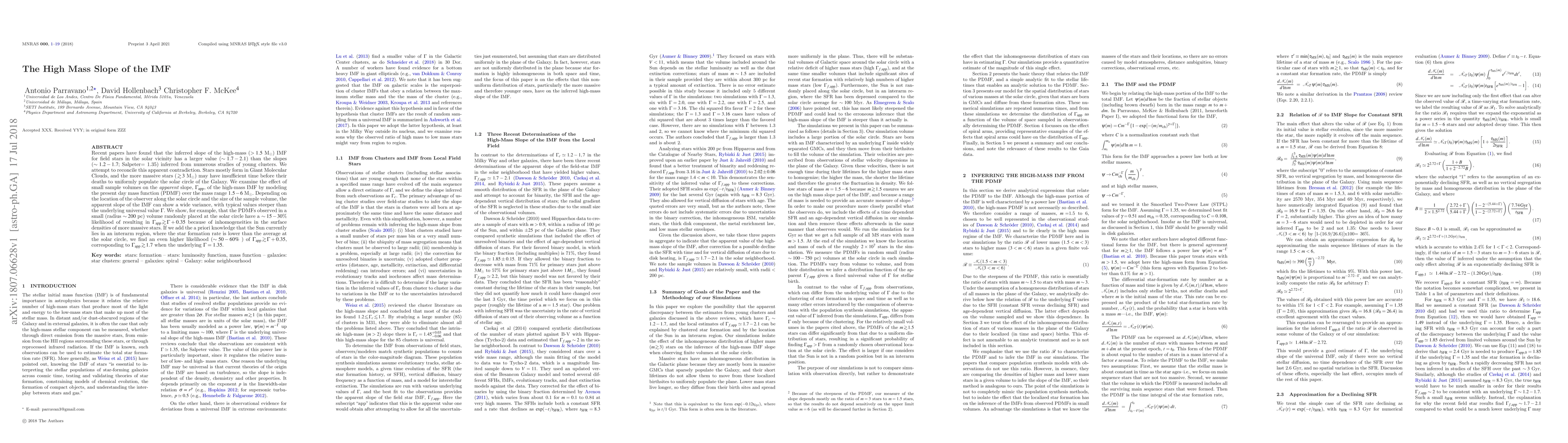 This paper explores the discrepancy in the inferred slopes of the high-mass Initial Mass Function (IMF) between field stars and young clusters, suggesting that small sample volumes and the Sun's location in an interarm region with lower star formation rates can lead to steeper apparent slopes, up to 1.7, compared to the universal value of 1.35.