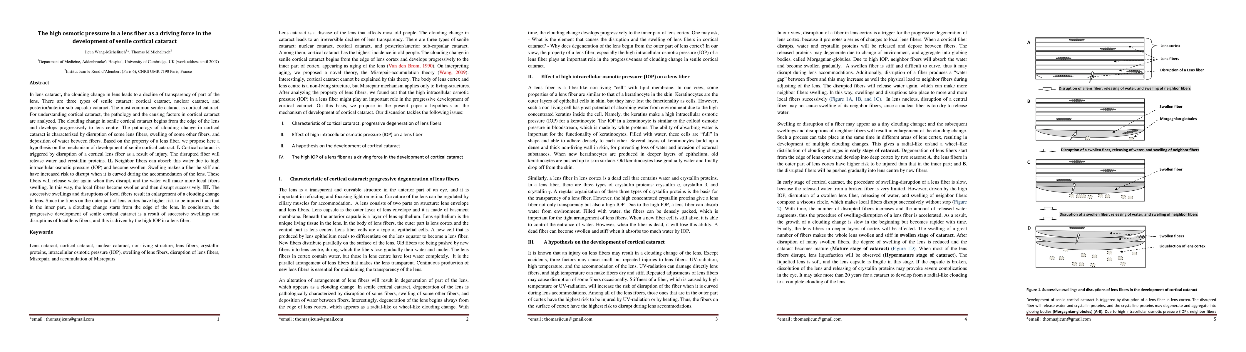Senile cortical cataract develops through successive swellings and disruptions of lens fibers driven by high intracellular osmotic pressure in a lens fiber.