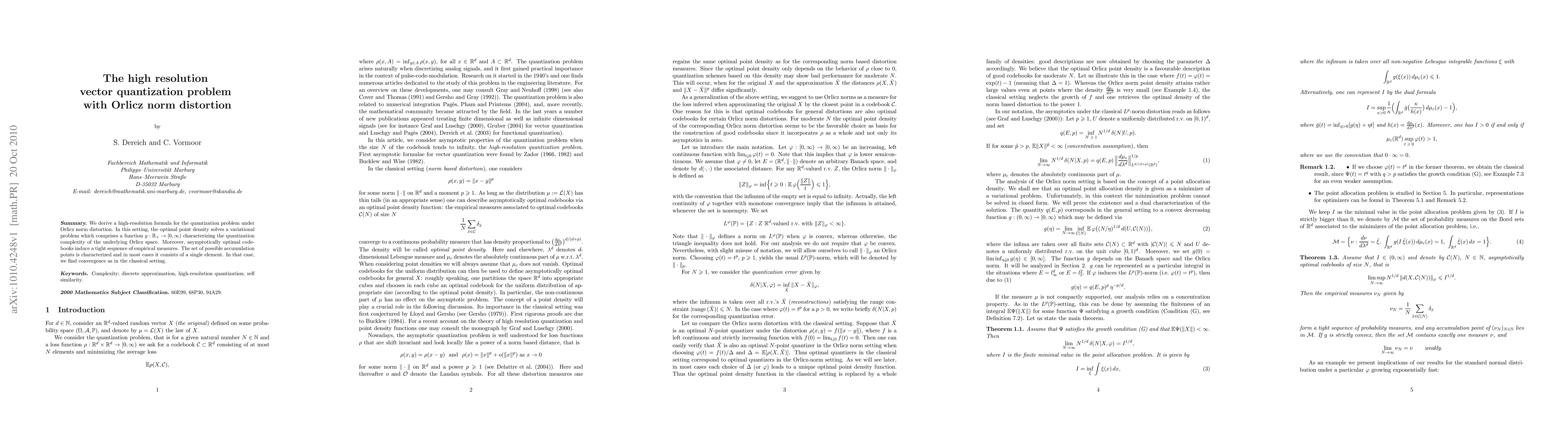 Researchers derive a high-resolution formula for optimizing vector quantization under Orlicz norm distortion, finding convergence in most cases when the optimal point density solves a variational problem.