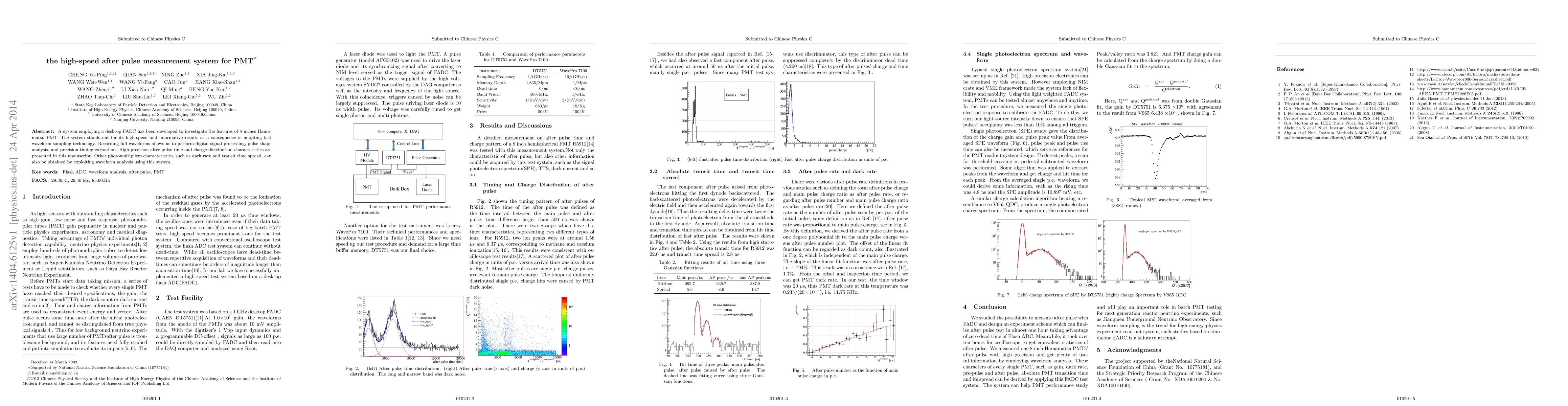A new system measures high-speed after pulses from a photomultiplier tube (PMT) using fast waveform sampling technology, revealing precise timing and charge distribution characteristics.