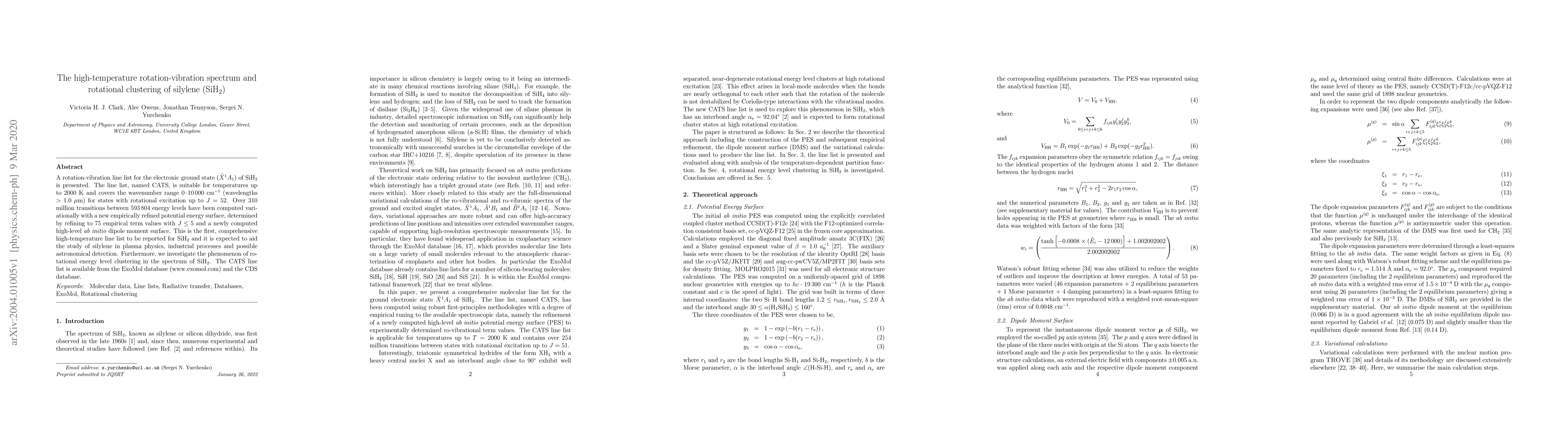 The development of a comprehensive, high-temperature rotation-vibration line list (CATS) for SiH$_2$, facilitating spectroscopic studies and providing insights into rotational energy level clustering.