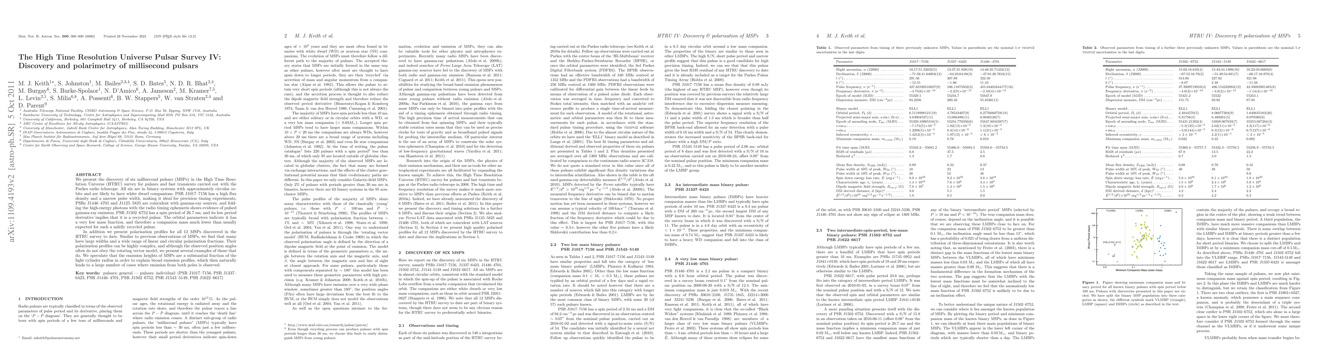 The HTRU survey methodology and the detailed polarimetric analysis of MSPs provide valuable insights into the characteristics and emission mechanisms of these fast-spinning neutron stars.