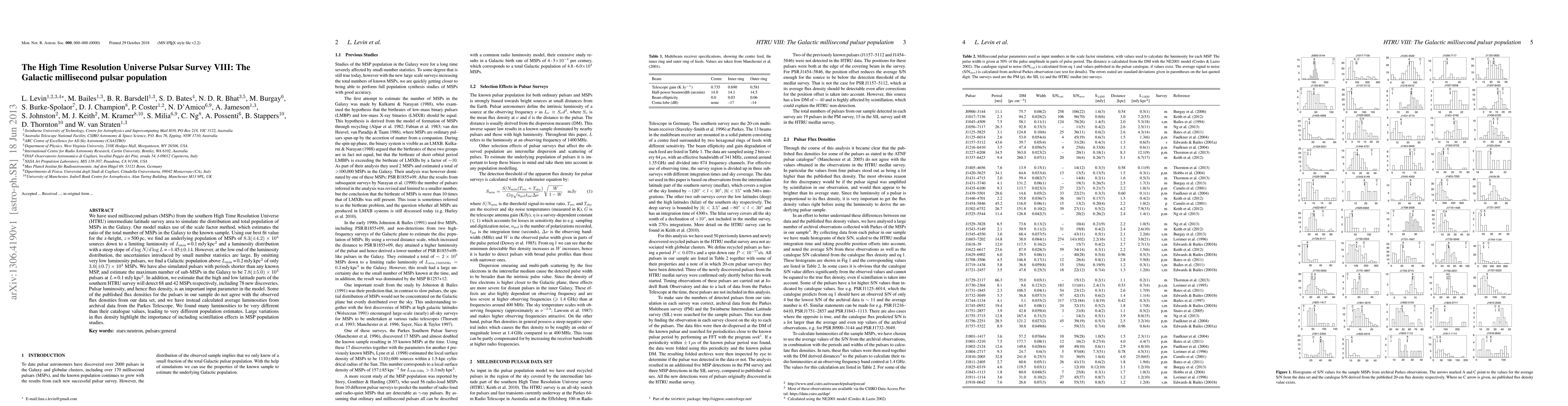The study estimates a Galactic millisecond pulsar population of 8,300 sources with a luminosity distribution having a steep slope, and detects 78 new discoveries in the southern HTRU survey.
