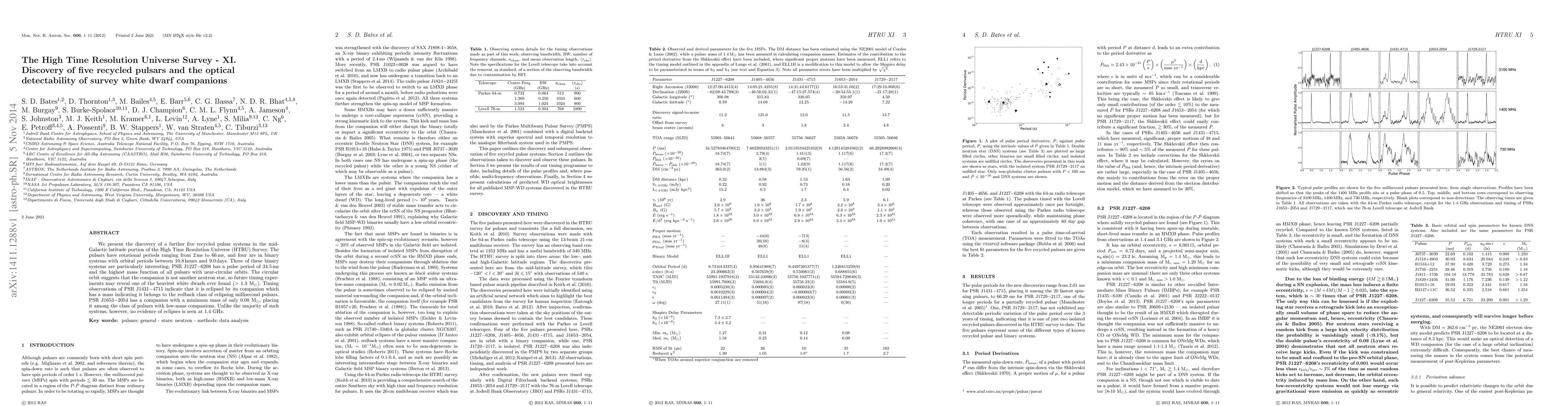 This paper reports the discovery of five recycled pulsar systems in the HTRU Survey, including four in binary systems with diverse orbital periods. Notably, three systems feature white dwarfs as companions, with one potentially revealing one of the heaviest white dwarfs, and another exhibiting redback characteristics.