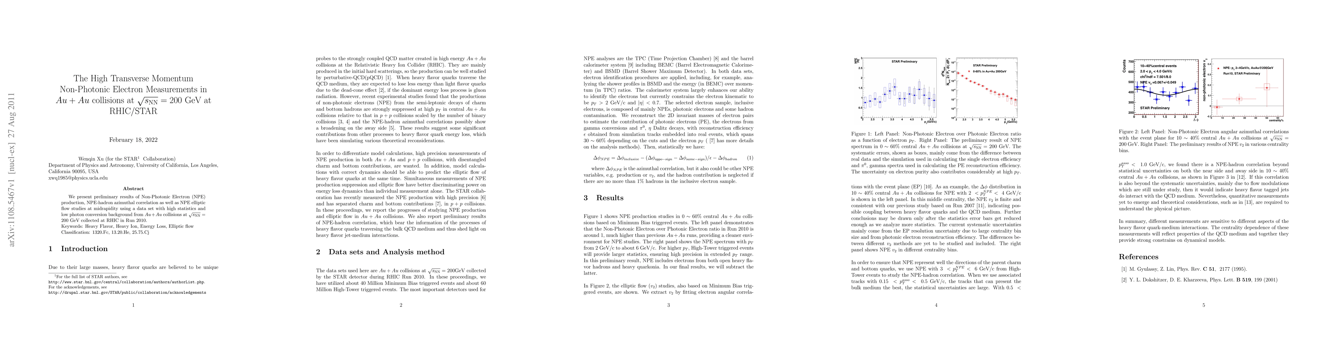 We present preliminary results of Non-Photonic Electron (NPE) production, NPE-hadron azimuthal correlation as well as NPE elliptic flow studies at midrapidity using a data set with high statistics and low photon conversion background from $Au+Au$ collisions at $\sqrt {S_{NN}} = 200$ GeV collected at RHIC in Run 2010.