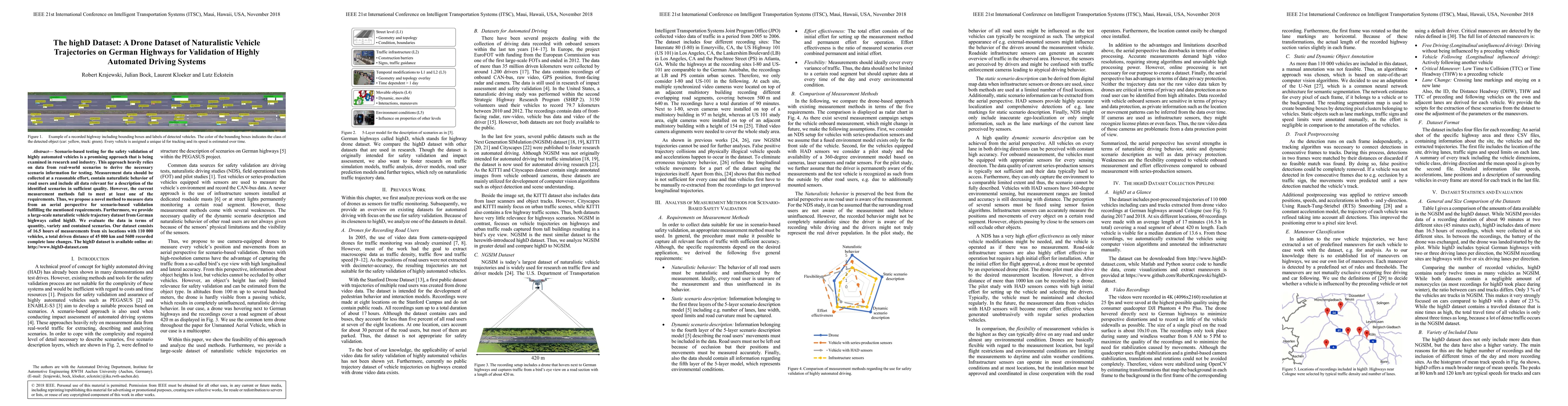 A new dataset called highD provides 16.5 hours of naturalistic vehicle trajectory data from German highways for testing highly automated driving systems.