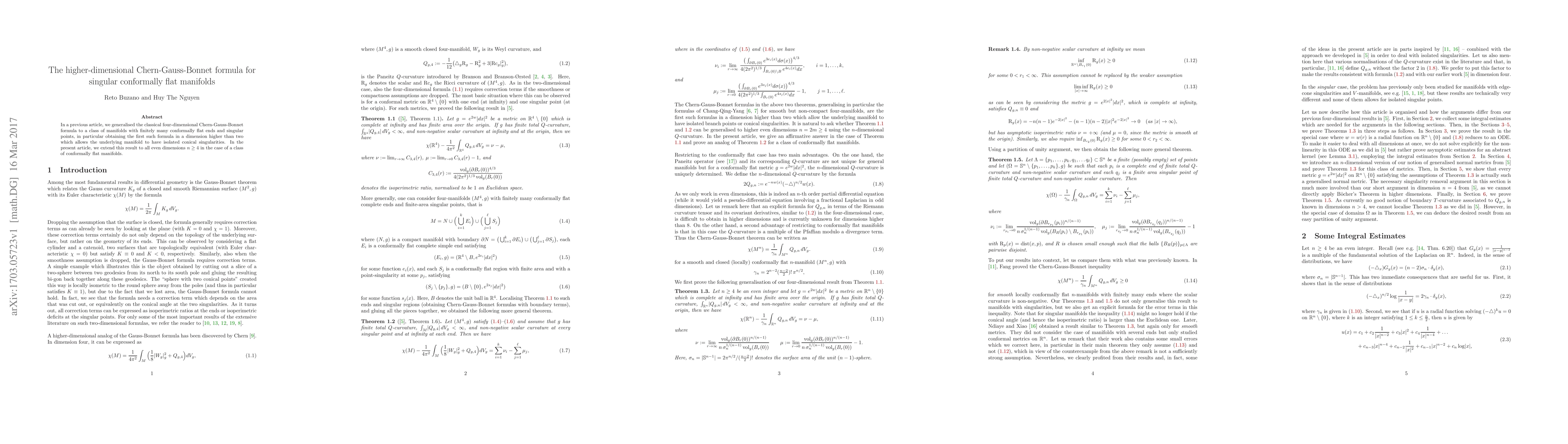 In a previous article, we generalised the classical four-dimensional Chern-Gauss-Bonnet formula to a class of manifolds with finitely many conformally flat ends and singular points, in particular obtaining the first such formula in a dimension higher than two which allows the underlying manifold to have isolated conical singularities. In the present article, we extend this result to all even dimensions $n\geq 4$ in the case of a class of conformally flat manifolds.