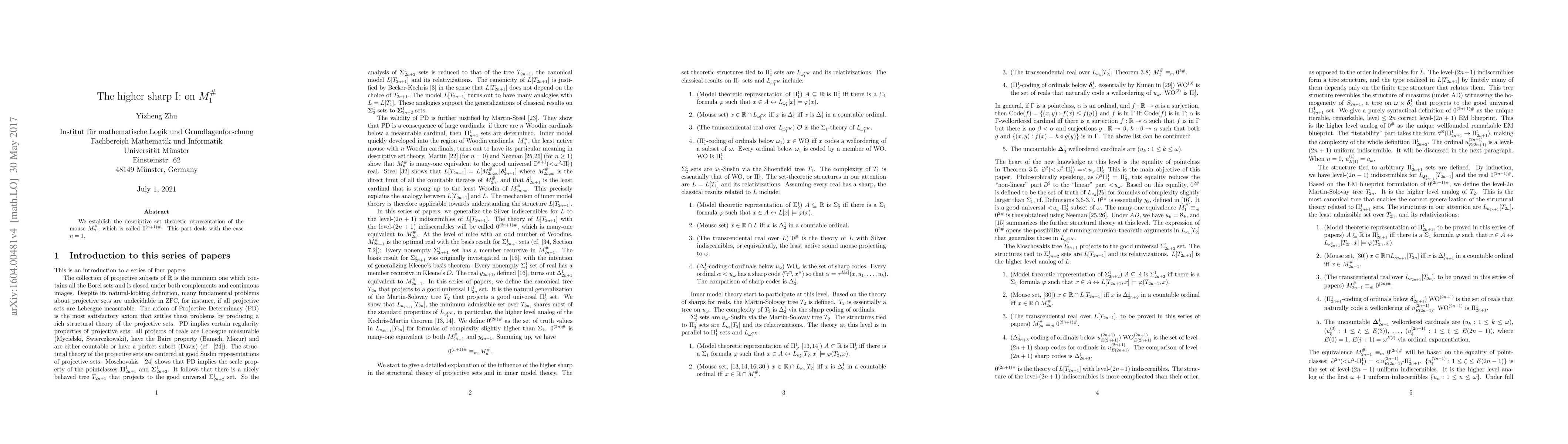 We establish the descriptive set theoretic representation of the mouse $M_n^{\#}$, which is called $0^{(n+1)\#}$. This part deals with the case $n=1$.