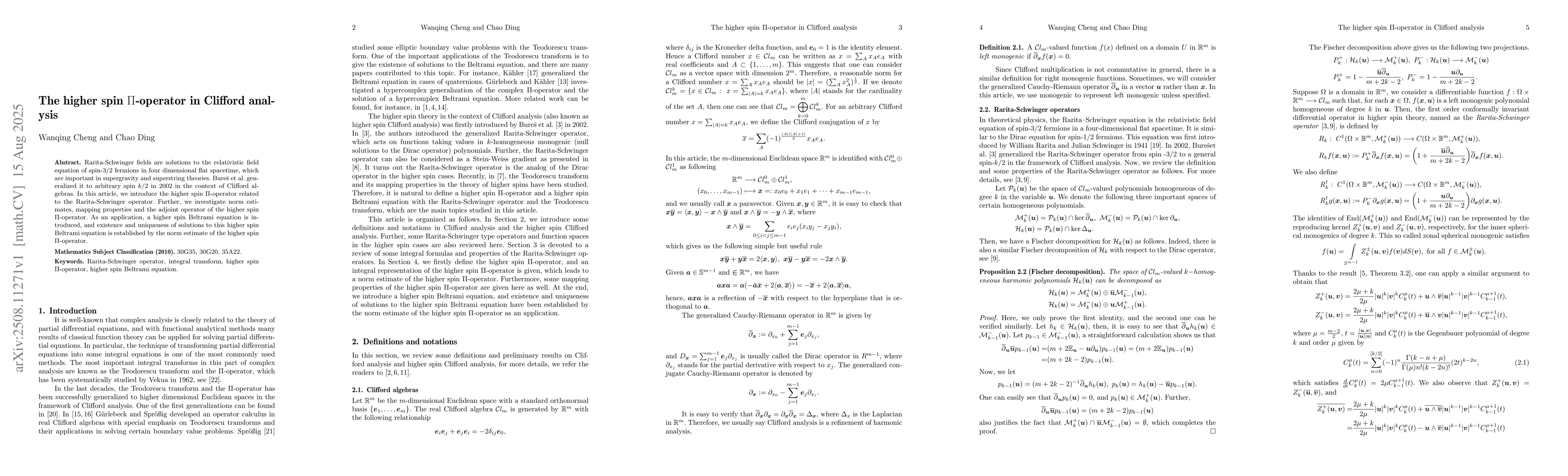 Rarita-Schwinger fields are solutions to the relativistic field equation of spin-$3/2$ fermions in four dimensional flat spacetime, which are important in supergravity and superstring theories. Bure\v s et al. generalized it to arbitrary spin $k/2$ in 2002 in the context of Clifford algebras. In this article, we introduce the higher spin $\Pi$-operator related to the Rarita-Schwinger operator. Further, we investigate norm estimates, mapping properties and the adjoint operator of the higher spin $\Pi$-operator. As an application, a higher spin Beltrami equation is introduced, and existence and uniqueness of solutions to this higher spin Beltrami equation is established by the norm estimate of the higher spin $\Pi$-operator.