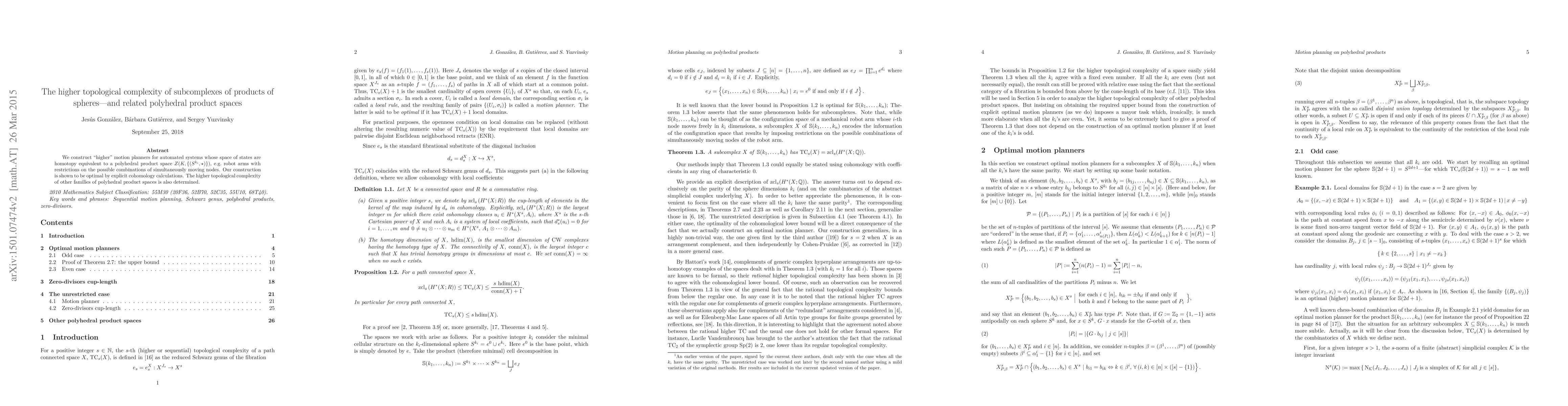We construct "higher" motion planners for automated systems whose space of states are homotopy equivalent to a polyhedral product space $Z(K,\{(S^{k_i},\star)\})$, e.g. robot arms with restrictions on the possible combinations of simultaneously moving nodes. Our construction is shown to be optimal by explicit cohomology calculations. The higher topological complexity of other families of polyhedral product spaces is also determined.