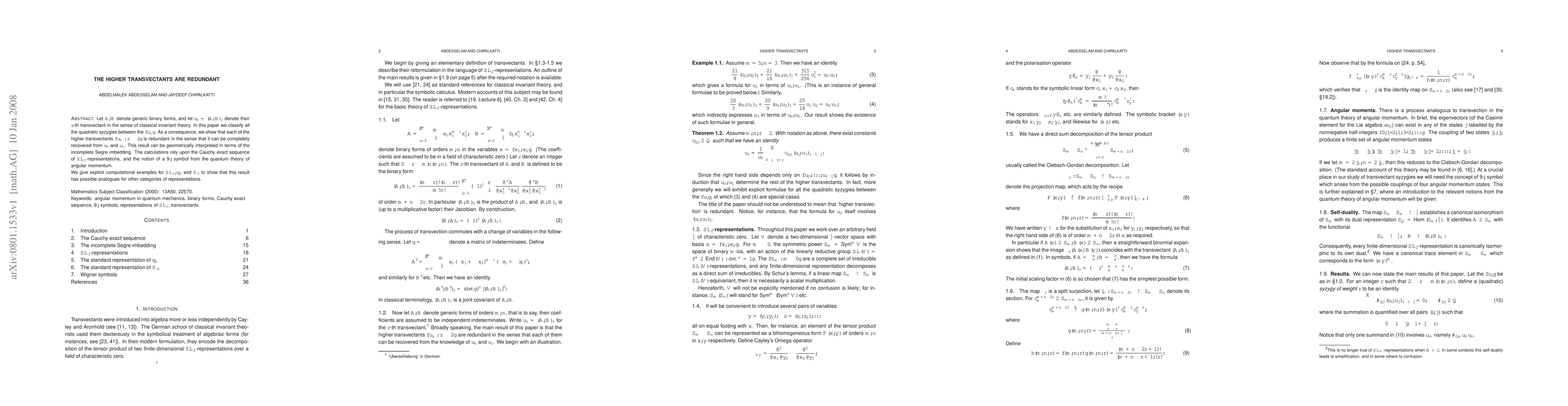Researchers prove that higher-order transvectants in classical invariant theory can be reconstructed from lower-order ones, rendering them redundant.