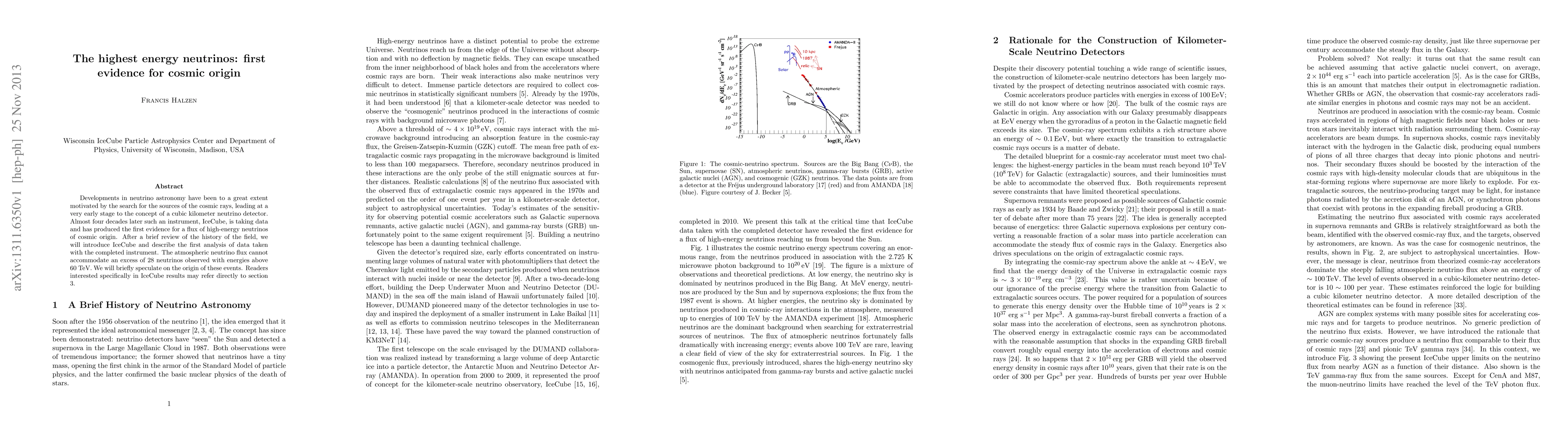 Developments in neutrino astronomy have been to a great extent motivated by the search for the sources of the cosmic rays, leading at a very early stage to the concept of a cubic kilometer neutrino detector. Almost four decades later such an instrument, IceCube, is taking data and has produced the first evidence for a flux of high-energy neutrinos of cosmic origin. After a brief review of the history of the field, we will introduce IceCube and describe the first analysis of data taken with the completed instrument. The atmospheric neutrino flux cannot accommodate an excess of 28 neutrinos observed with energies above 60 TeV. We will briefly speculate on the origin of these events. Readers interested specifically in IceCube results may refer directly to section 3.