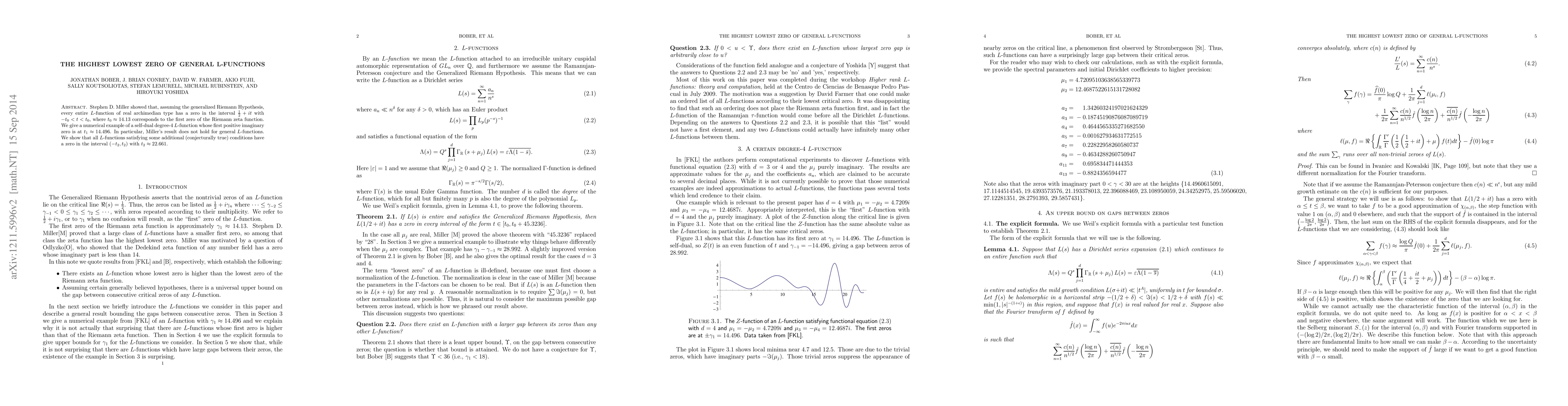 Stephen D. Miller showed that, assuming the generalized Riemann Hypothesis, every entire $L$-function of real archimedian type has a zero in the interval $\frac12+i t$ with $-t_0 < t < t_0$, where $t_0\approx 14.13$ corresponds to the first zero of the Riemann zeta function. We give an example of a self-dual degree-4 $L$-function whose first positive imaginary zero is at $t_1\approx 14.496$. In particular, Miller's result does not hold for general $L$-functions. We show that all $L$-functions satisfying some additional (conjecturally true) conditions have a zero in the interval $(-t_2,t_2)$ with $t_2\approx 22.661$.