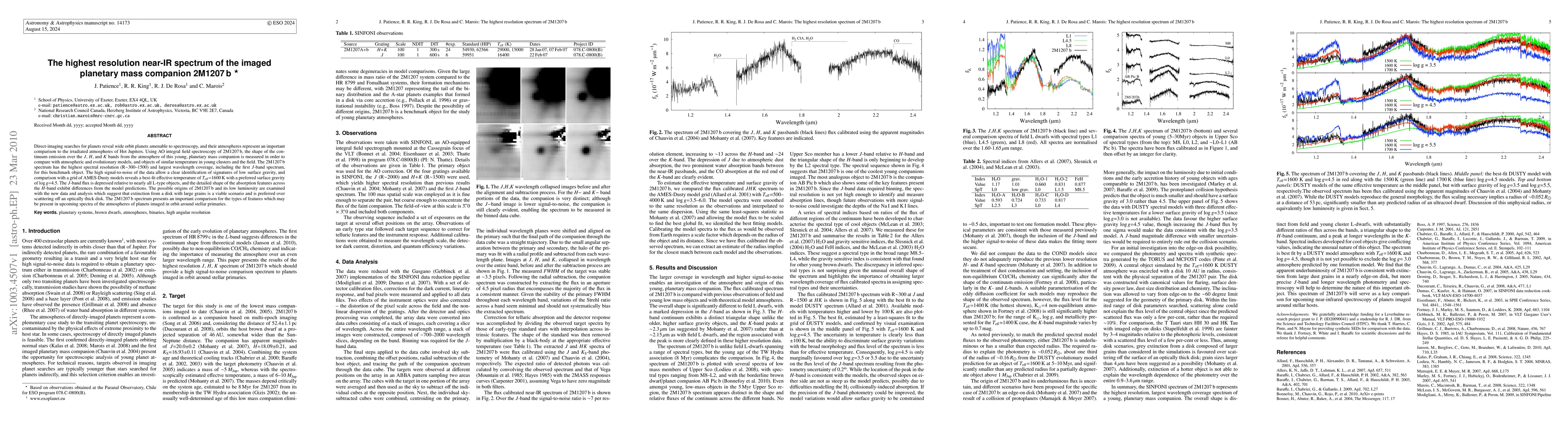 Direct-imaging searches for planets reveal wide orbit planets amenable to spectroscopy, and their atmospheres represent an important comparison to the irradiated atmospheres of Hot Jupiters. Using AO integral field spectroscopy of 2M1207 b, the shape of the continuum emission over the J, H, and K bands from the atmosphere of this young, planetary mass companion is measured in order to compare with atmospheric and evolutionary models, and objects of similar temperature in young clusters and the field. The 2M1207 b spectrum has the highest spectral resolution (R~300-1500) and largest wavelength coverage, including the first J-band spectrum, for this benchmark object. The high signal-to-noise of the data allow a clear identification of signatures of low surface gravity, and comparison with a grid of AMES-Dusty models reveals a best-fit effective temperature of Teff=1600 K with a preferred surface gravity of log g=4.5. The J-band flux is depressed relative to nearly all L-type objects, and the detailed shape of the absorption features across the H-band exhibit differences from the model predictions. The possible origins of 2M1207 b and its low luminosity are examined with the new data and analysis which suggest that extinction from a disk with large grains is a viable scenario and is preferred over scatttering off an optically thick disk. The 2M1207 b spectrum presents an important comparison for the types of features which may be present in upcoming spectra of the atmospheres of planets imaged in orbit around stellar primaries.