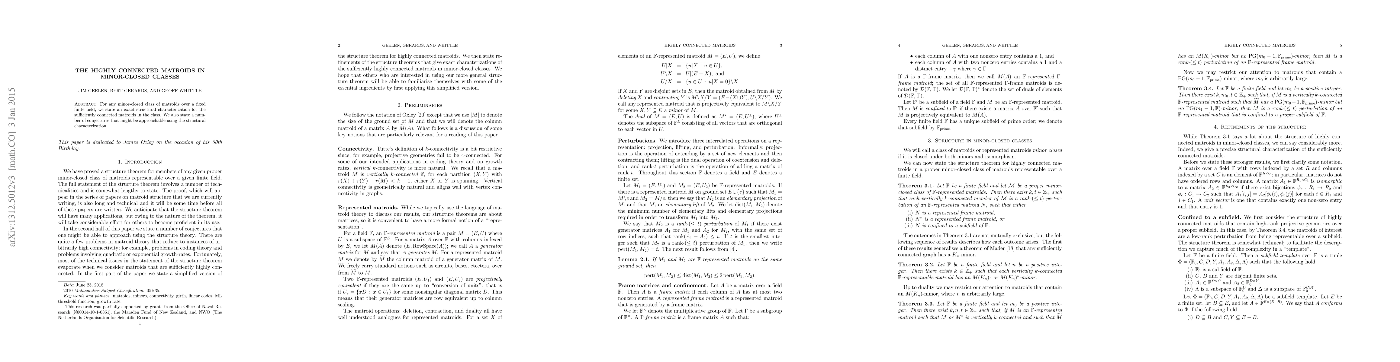 This paper provides a precise structural characterization for highly connected matroids within any minor-closed class over a fixed finite field, and proposes several conjectures that may be tackled using this new framework.