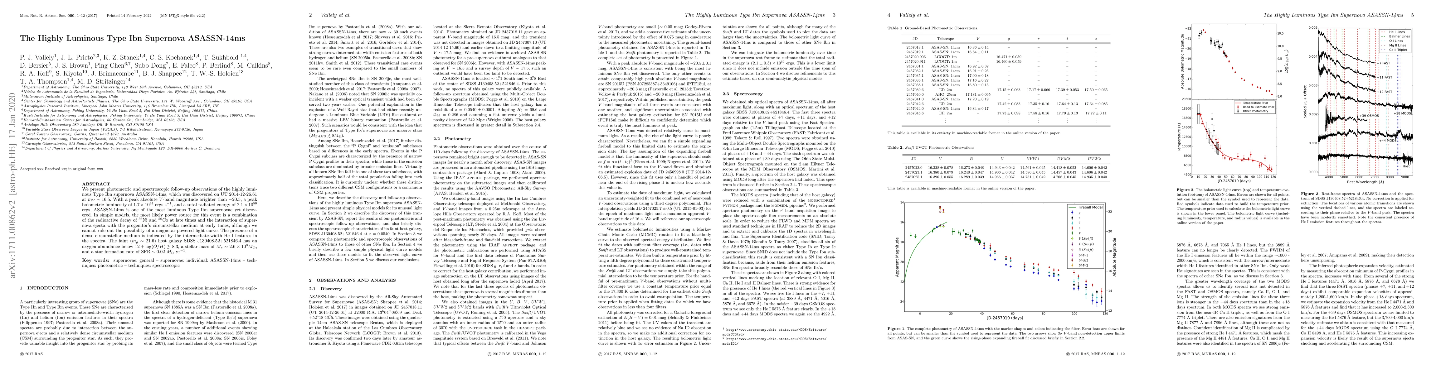 ASASSN-14ms is a highly luminous Type Ibn supernova, discovered in 2014, with a peak brightness of $-20.5$ in the $V$-band and a total radiated energy of $2.1 \times 10^{50}$ ergs. Its light source likely combines radioactive decay and interaction with a dense circumstellar medium.