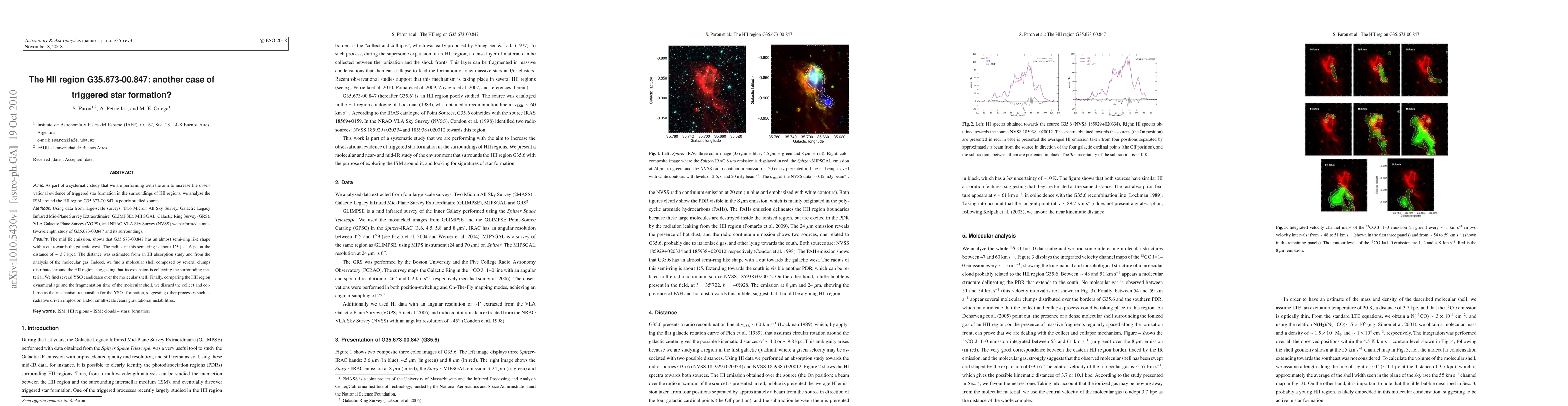 A study of the HII region G35.673-00.847 finds a molecular shell with YSO candidates, suggesting triggered star formation through radiative driven implosion or small-scale Jeans gravitational instabilities.