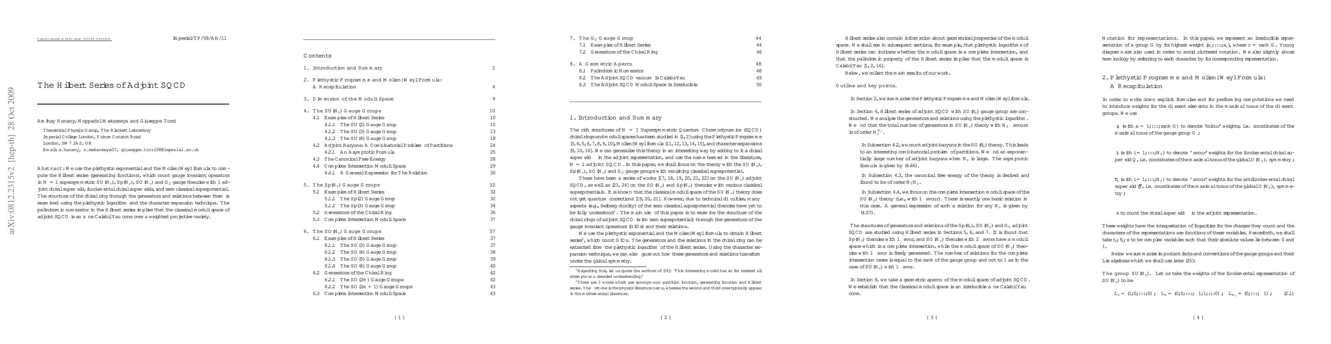 We use the plethystic exponential and the Molien-Weyl formula to compute the Hilbert series (generating funtions), which count gauge invariant operators in N=1 supersymmetric SU(N_c), Sp(N_c), SO(N_c) and G_2 gauge theories with 1 adjoint chiral superfield, fundamental chiral superfields, and zero classical superpotential. The structure of the chiral ring through the generators and relations between them is examined using the plethystic logarithm and the character expansion technique. The palindromic numerator in the Hilbert series implies that the classical moduli space of adjoint SQCD is an affine Calabi-Yau cone over a weighted projective variety.